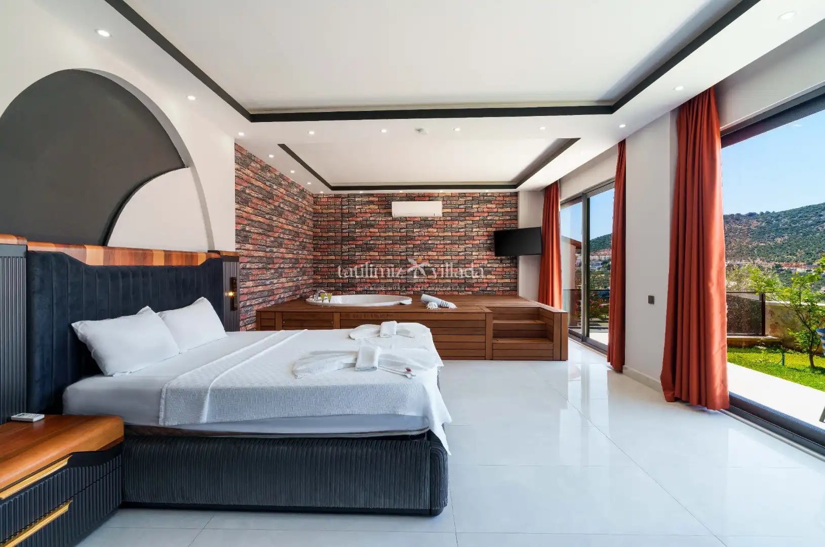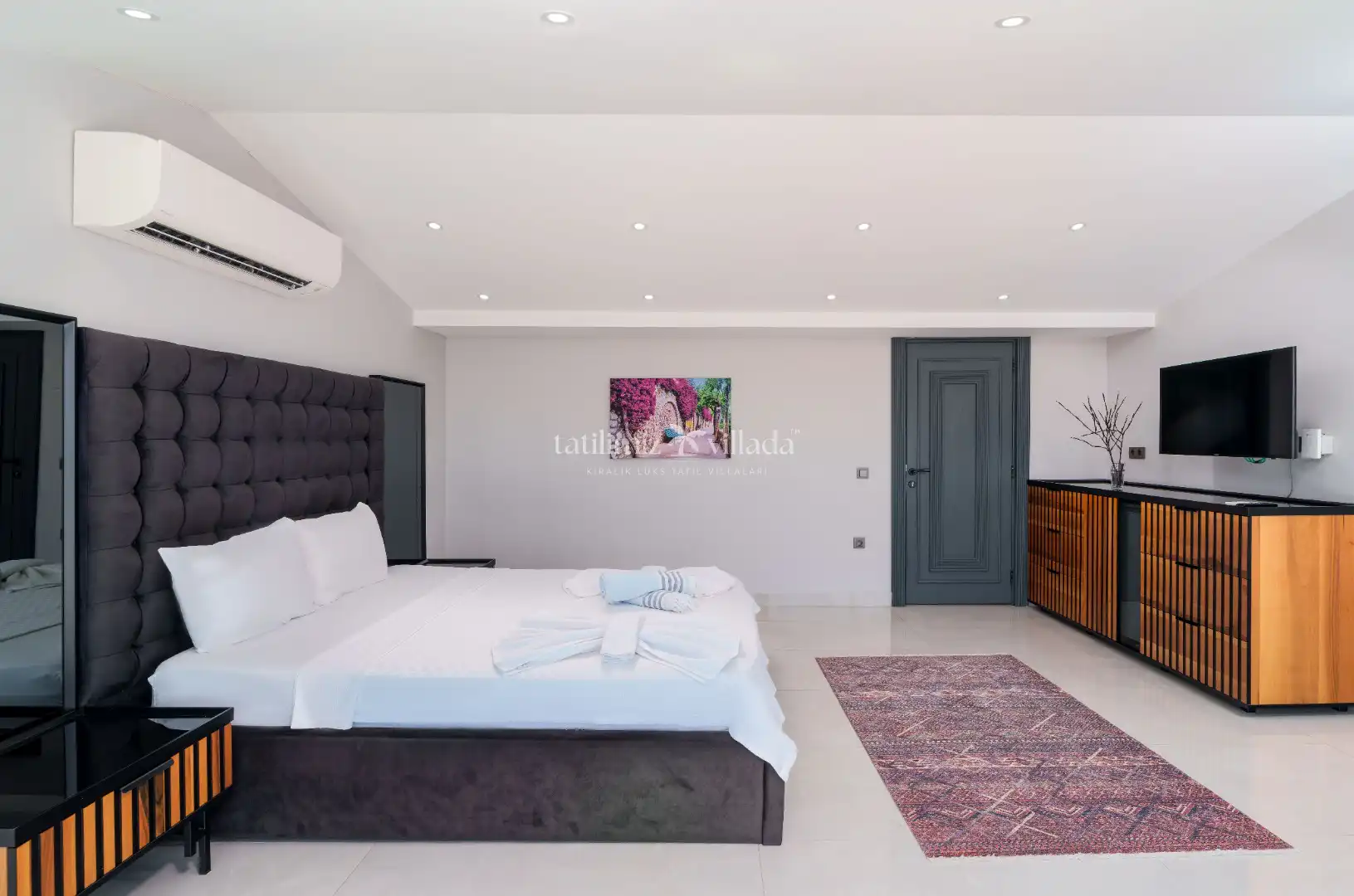 Türkiye’nin gözde tatil beldelerinden biri olan Kalkan’ın Kızıltaş bölgesinde konumlanan Villa Papirpüs, muhteşem deniz ve doğa manzarasıyla lüks bir tatil deneyimi sunmaktadır. 4 yatak odası ve 8 kişilik konaklama kapasitesiyle geniş aileler ve arkadaş grupları için ideal bir seçenektir. Modern mimarisi, ferah yaşam alanları ve şık tasarımıyla konfor ön planda tutulmuştur.
