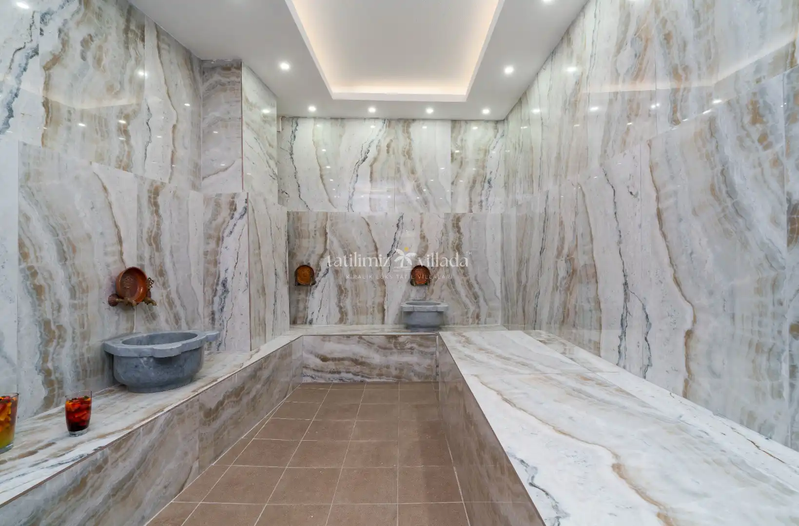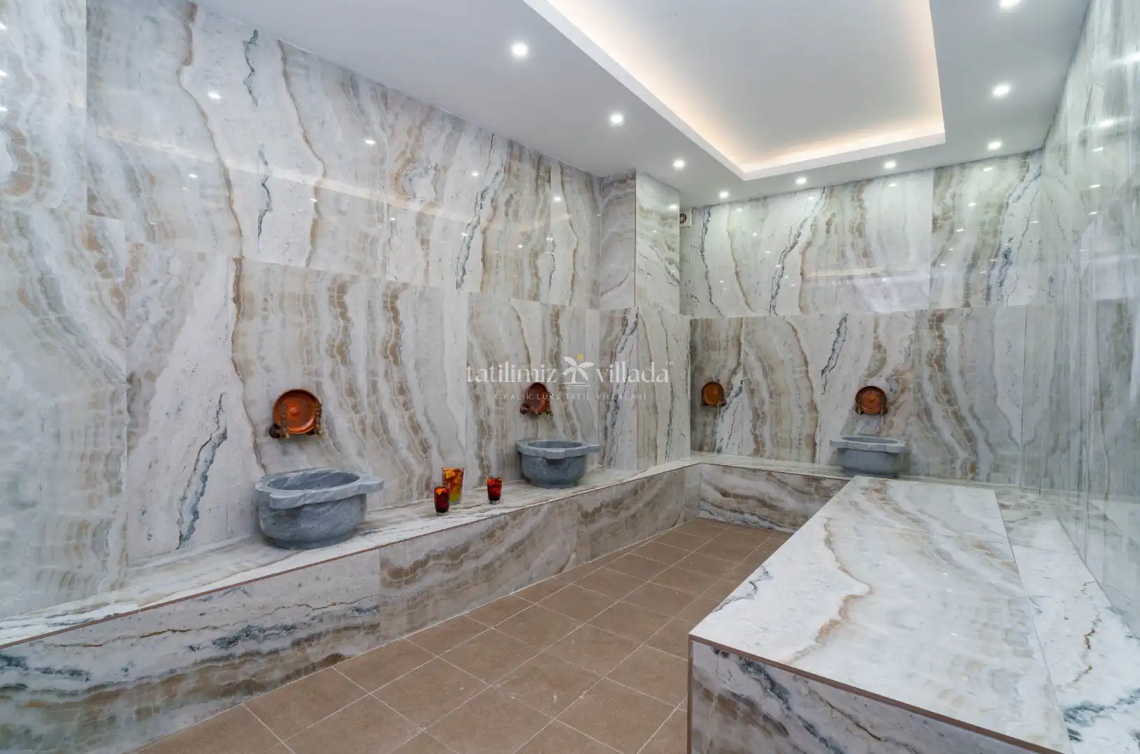 Villada kapalı havuz, çocuk havuzu, spor alanı, bar, çift jakuzi, hamam, sauna, bilardo ve langırt gibi birçok ayrıcalıklı alan bulunmaktadır. Hem dinlenmek hem de keyifli vakit geçirmek isteyen misafirler için her detay özenle düşünülmüş, yılın her döneminde konforlu bir tatil imkânı sunulmuştur.