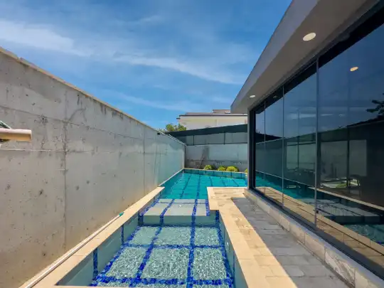 İç mekanları, şık ve modern tasarımıyla öne çıkan villamız, konforlu yaşam alanları ile misafirlerinin rahatlığını ön planda tutmaktadır. 4 geniş yatak odası, her biri konforlu yataklar ve şık dekorasyon ile donatılmıştır. Ayrıca, tam donanımlı mutfak ve oturma odası, tatil boyunca tüm ihtiyaçlarınıza cevap verecek şekilde düzenlenmiştir.