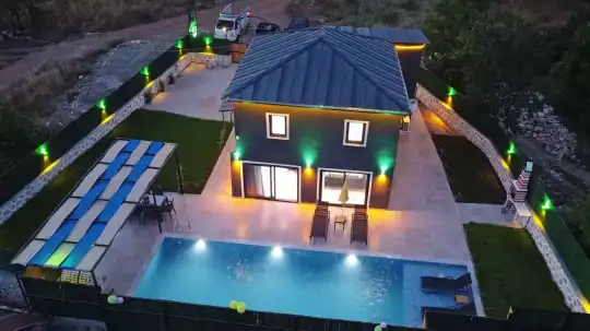Doğa içerisinde konumlu villanın havuz teras alanı korunaklıdır. Çekirdek aile ve arkadaş grupları için ideal seçenekler arasında bulunan villamız sizlere güzel bir tatil keyfi sunar