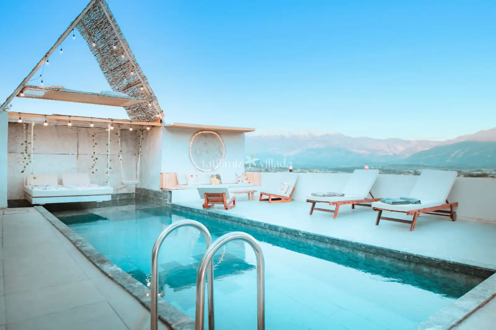 Villamızın özel yüzme havuzu ve bahçesi tamamen korunaklı olup dışarıdan görünmeyecek şekilde dizayn edilmiştir. Bu özelliği sayesinde muhafazakâr aileler, balayı çiftleri ve gizliliğine önem veren misafirler için son derece uygun bir tatil imkânı sunmaktadır. Bahçede keyifli vakit geçirebileceğiniz oturma alanları, şezlonglar ve dinlenme köşeleri bulunmaktadır.
