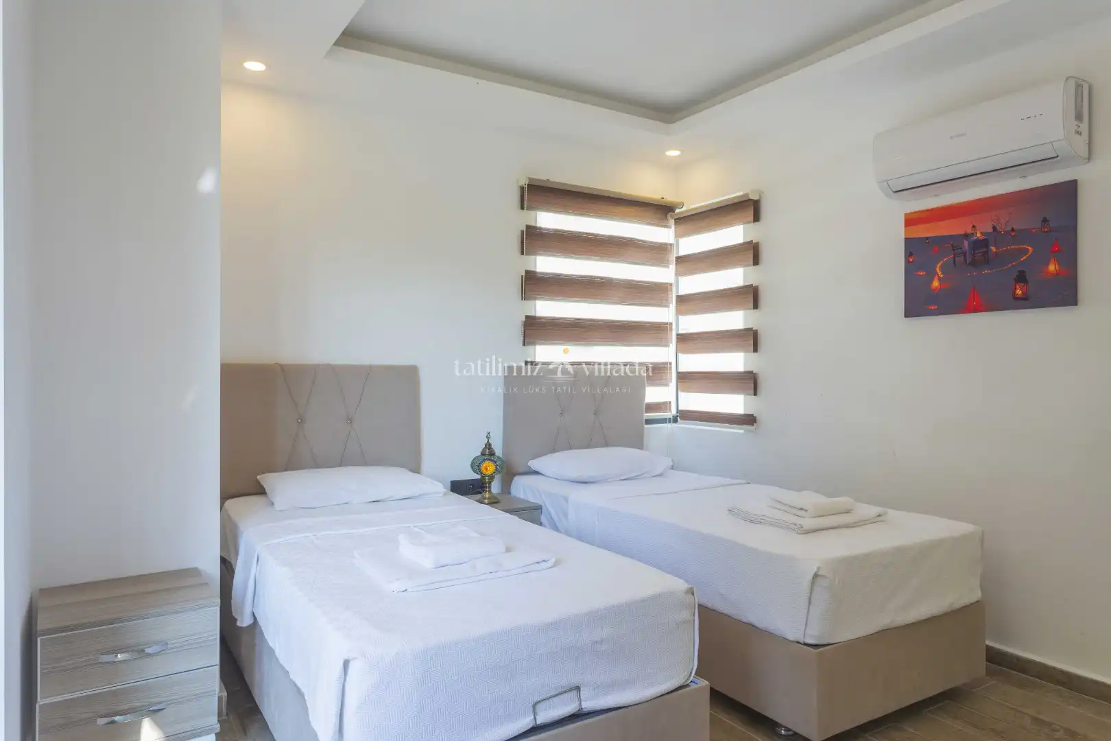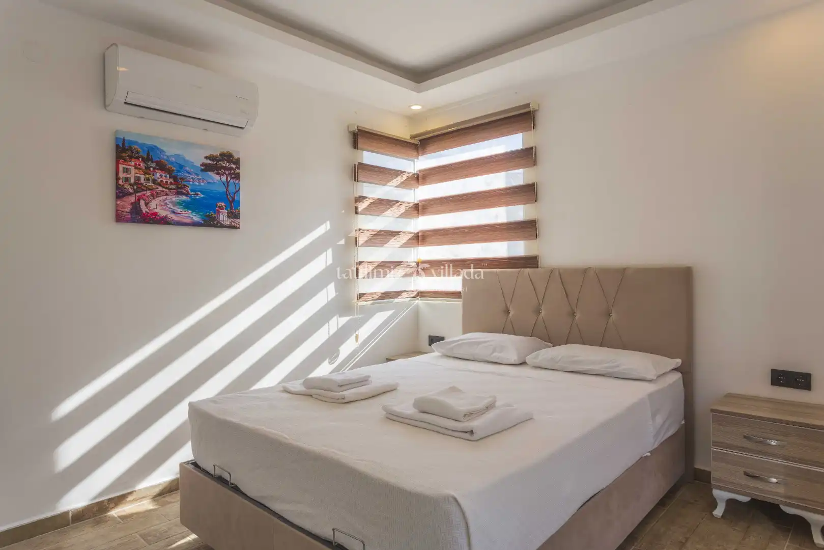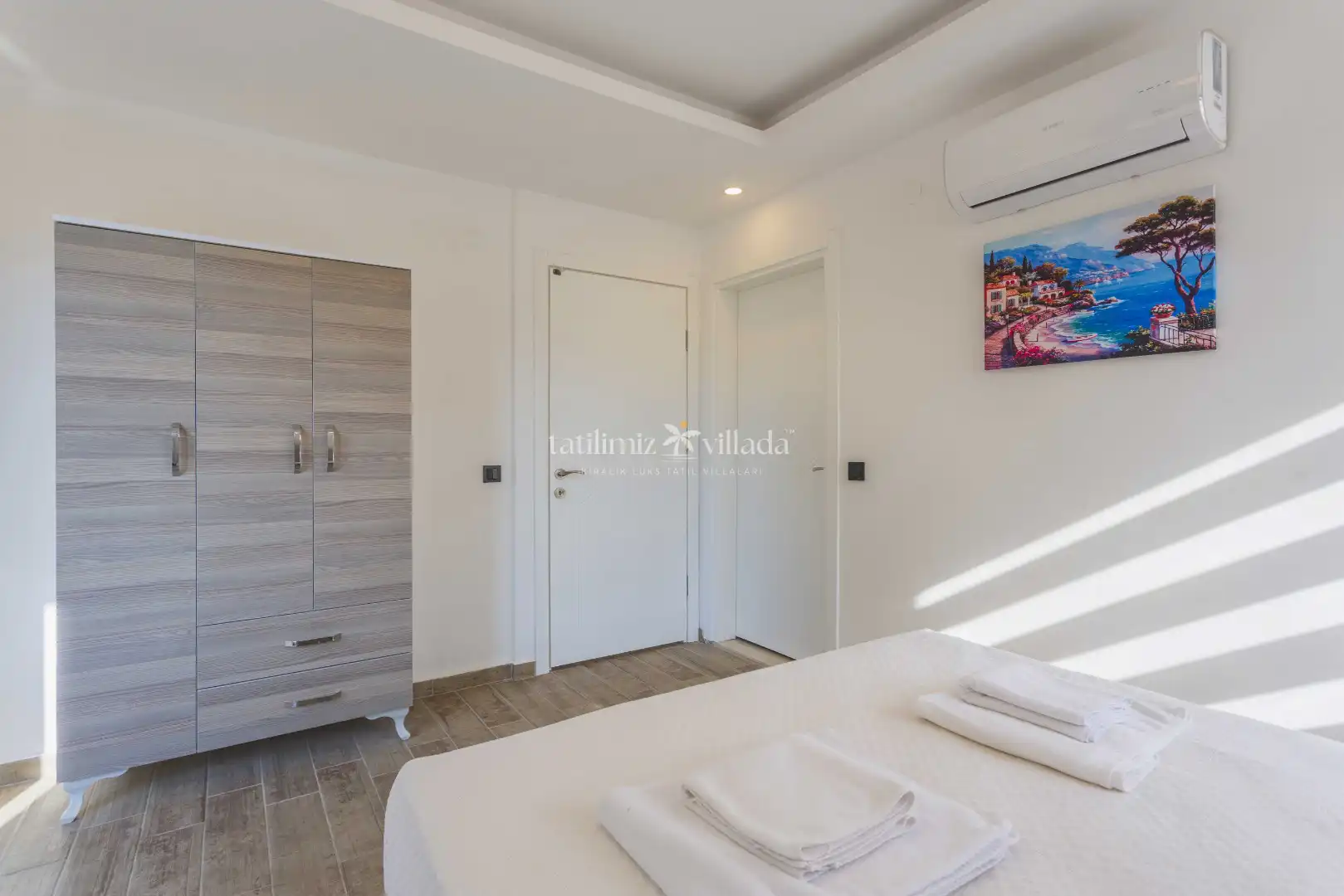 Modern ve şık bir anlayışla tasarlanan villanın iç mekânlarında; konforlu oturma grupları, aydınlık salon ve ferah odalar yer almaktadır. Tam donanımlı mutfakta buzdolabı, fırın, ekmek kızartma makinesi, çamaşır ve bulaşık makinesi gibi tüm temel ihtiyaçlar düşünülmüştür. Ayrıca villada güvenli kasa, sineklikler ve kaliteli mobilyalar bulunmaktadır.
