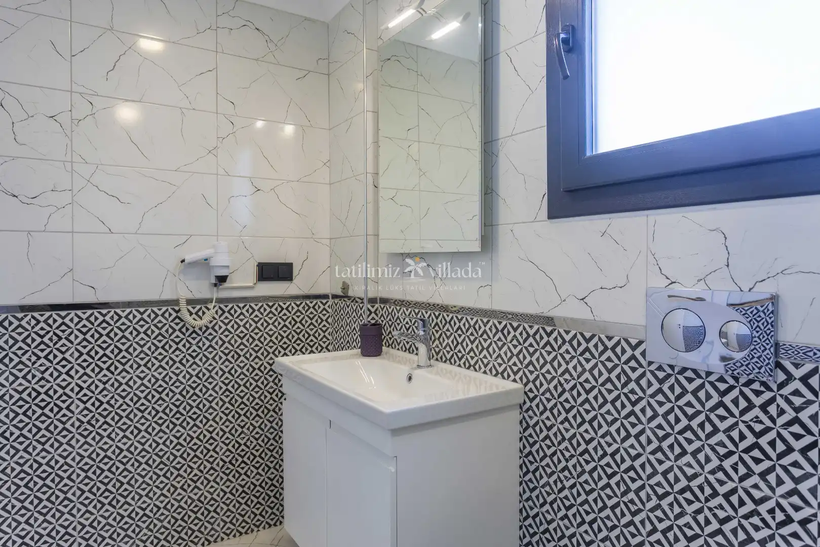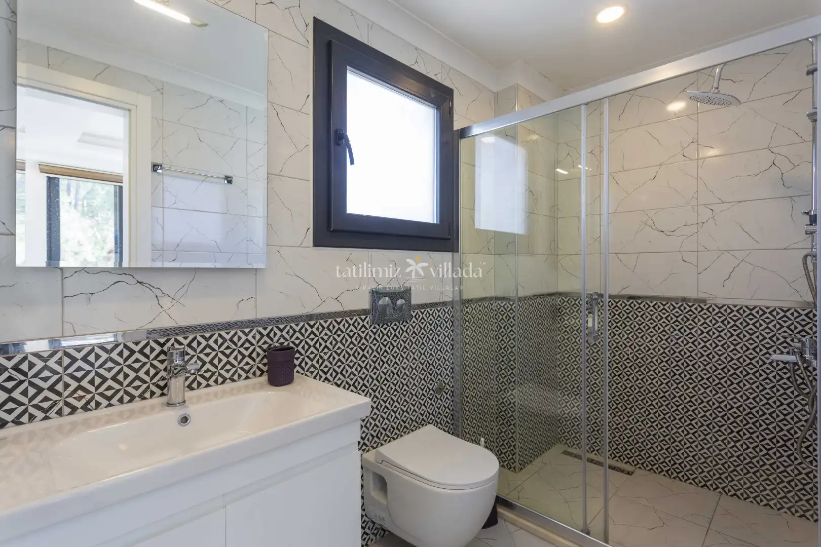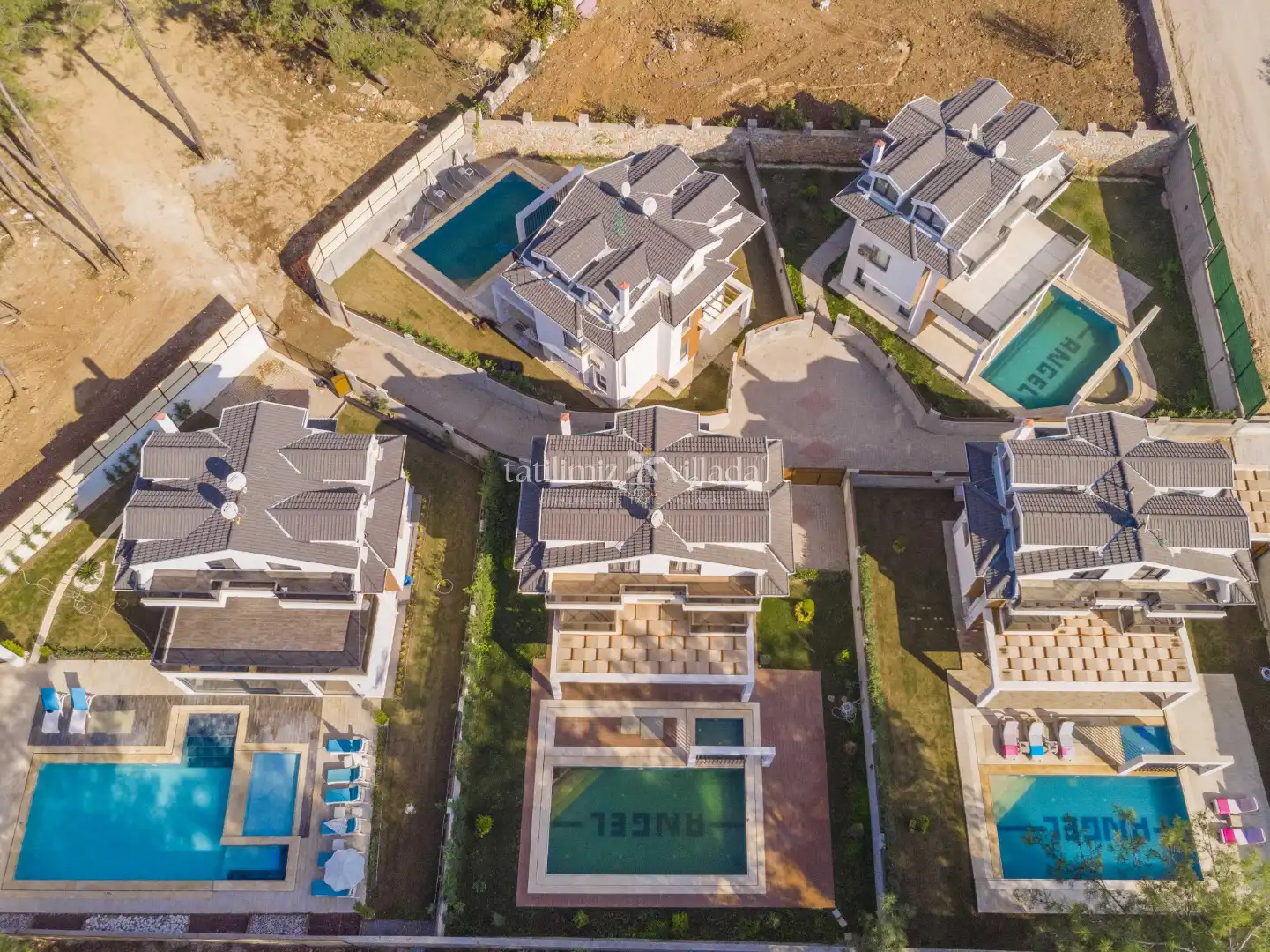 Modern ve şık bir anlayışla tasarlanan villanın iç mekânlarında; konforlu oturma grupları, aydınlık salon ve ferah odalar yer almaktadır. Tam donanımlı mutfakta buzdolabı, fırın, ekmek kızartma makinesi, çamaşır ve bulaşık makinesi gibi tüm temel ihtiyaçlar düşünülmüştür. Ayrıca villada güvenli kasa, sineklikler ve kaliteli mobilyalar bulunmaktadır.