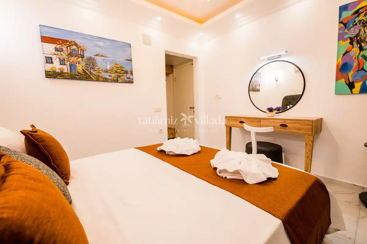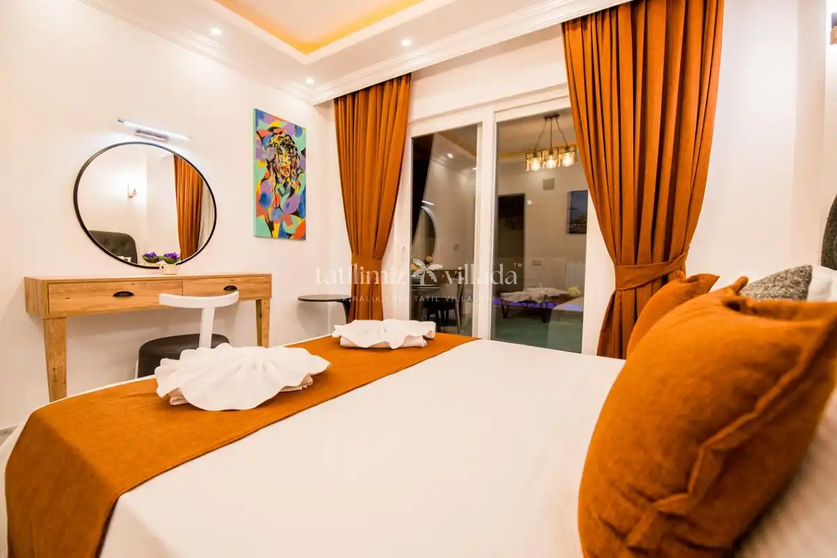 Modern ve konforlu şekilde tasarlanan yaşam alanları, aileler ve arkadaş grupları için rahat bir konaklama deneyimi sağlar. Korunaklı havuz alanı sayesinde gözlerden uzak bir tatil sunan villamız, şehir merkezine yakınlığı ile de avantaj sağlamaktadır.