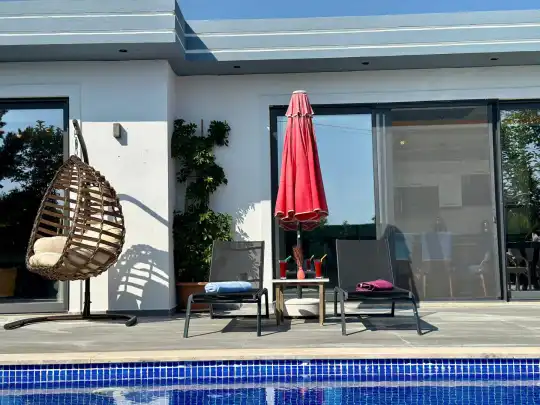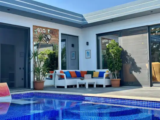 Modern mimarisiyle doğal yaşamı birleştiren Villa Renk, özellikle mahremiyet arayan misafirler için özenle planlanmıştır. Dışarıdan görünmeyecek şekilde tasarlanmış havuz alanı, rahatça güneşlenip serinlemenize olanak tanırken, yüksek duvarlarla çevrili özel bahçesi sayesinde tamamen size ait bir alanda konaklama imkânı sağlar. Muhafazakâr aileler ve çiftler için gönül rahatlığıyla tatil yapabilecekleri bir ortam sunar.