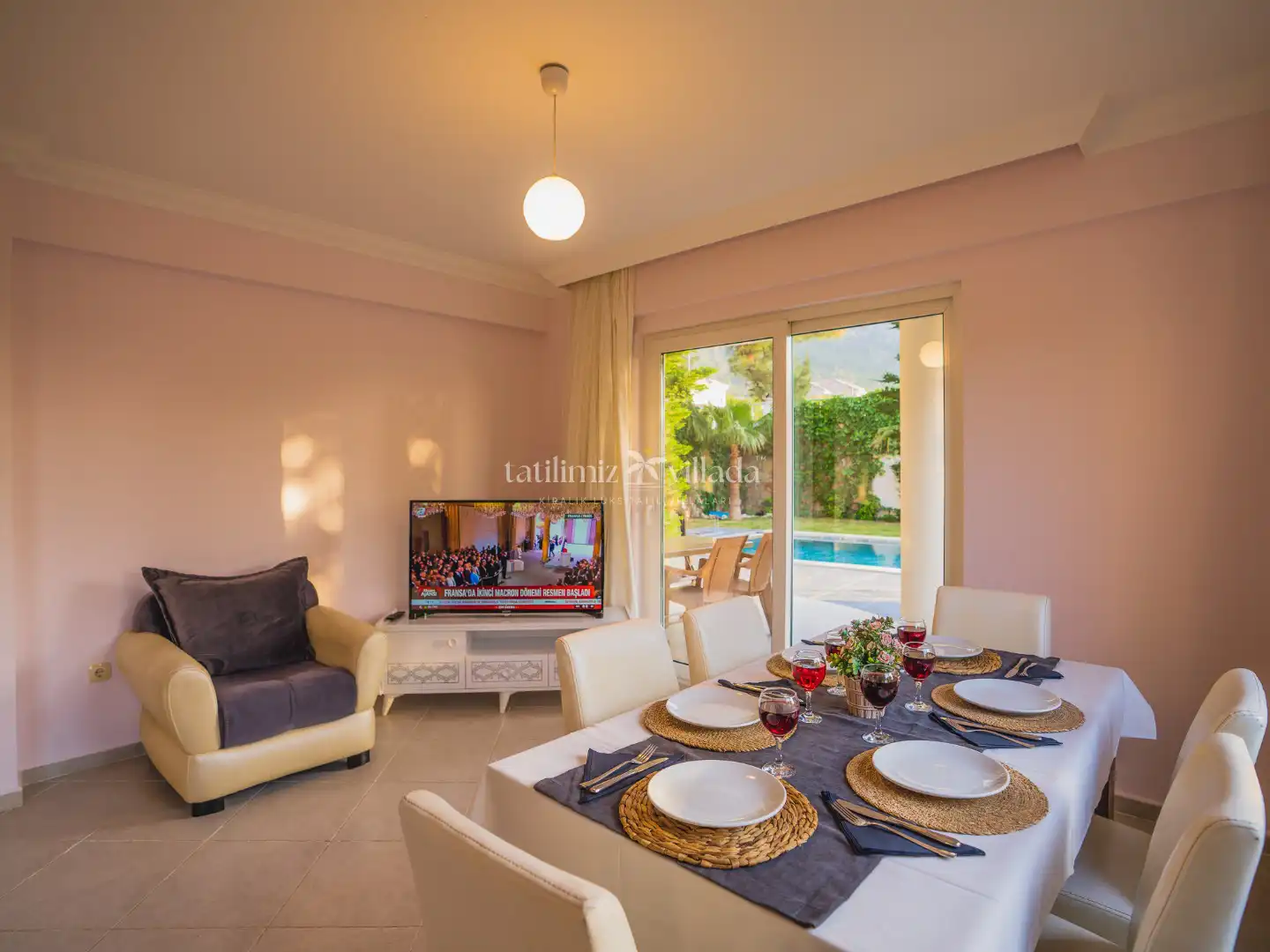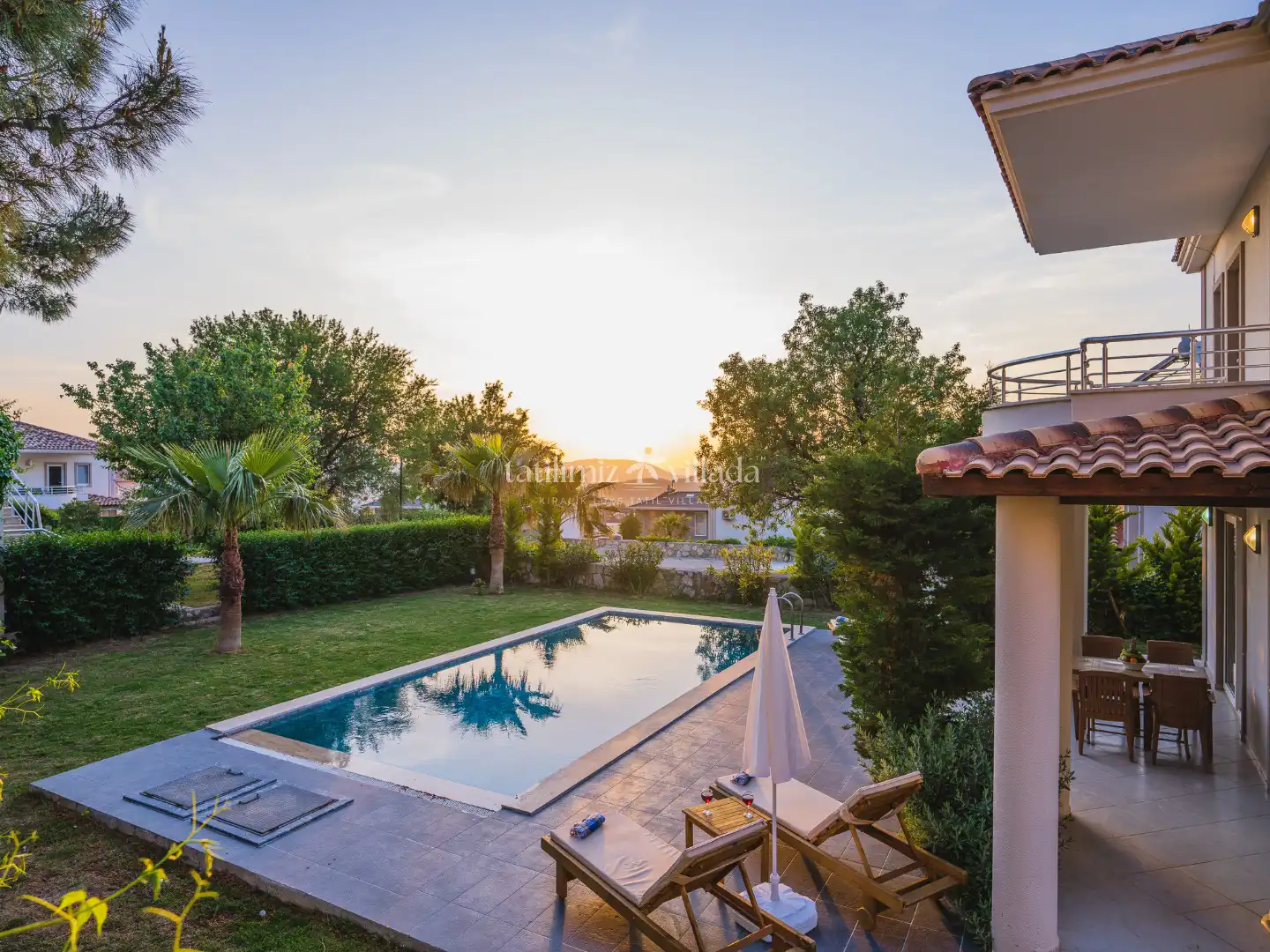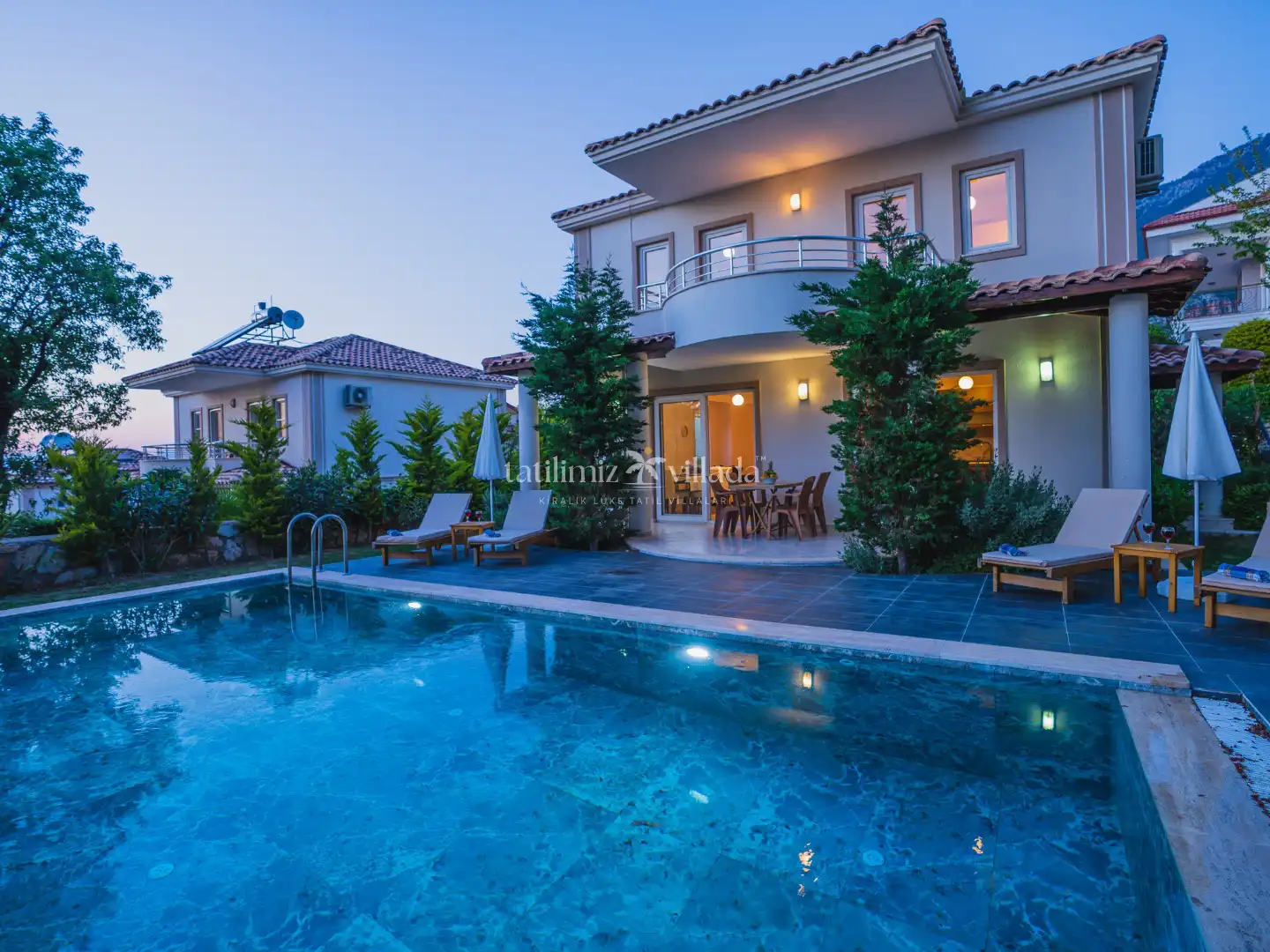 Villamız, modern ve şık dizayna sahip 3 yatak odası, ferah salonu ve tam donanımlı mutfağı ile toplamda konforlu bir konaklama imkânı sunmaktadır. Kendine ait özel yüzme havuzu ve bakımlı geniş bahçesi, tatiliniz boyunca keyifli ve özgür bir alan sağlar.