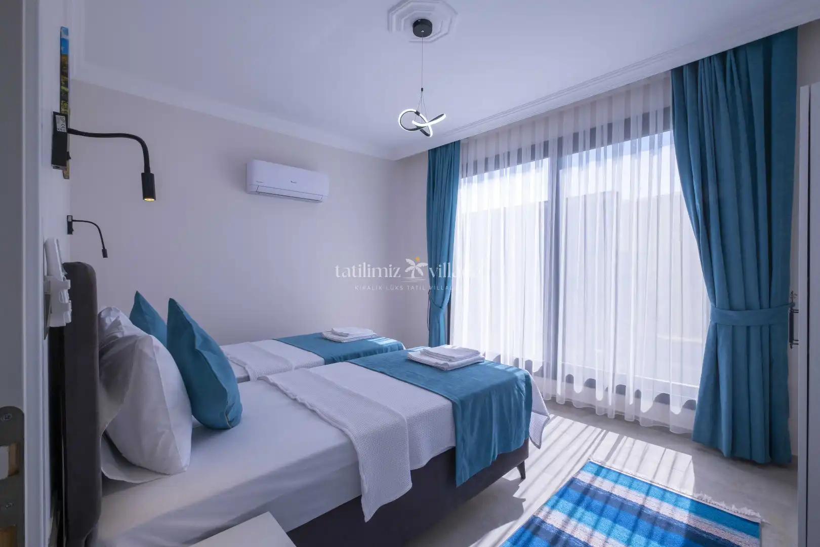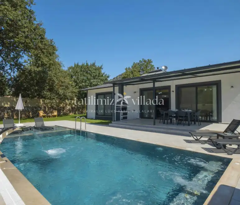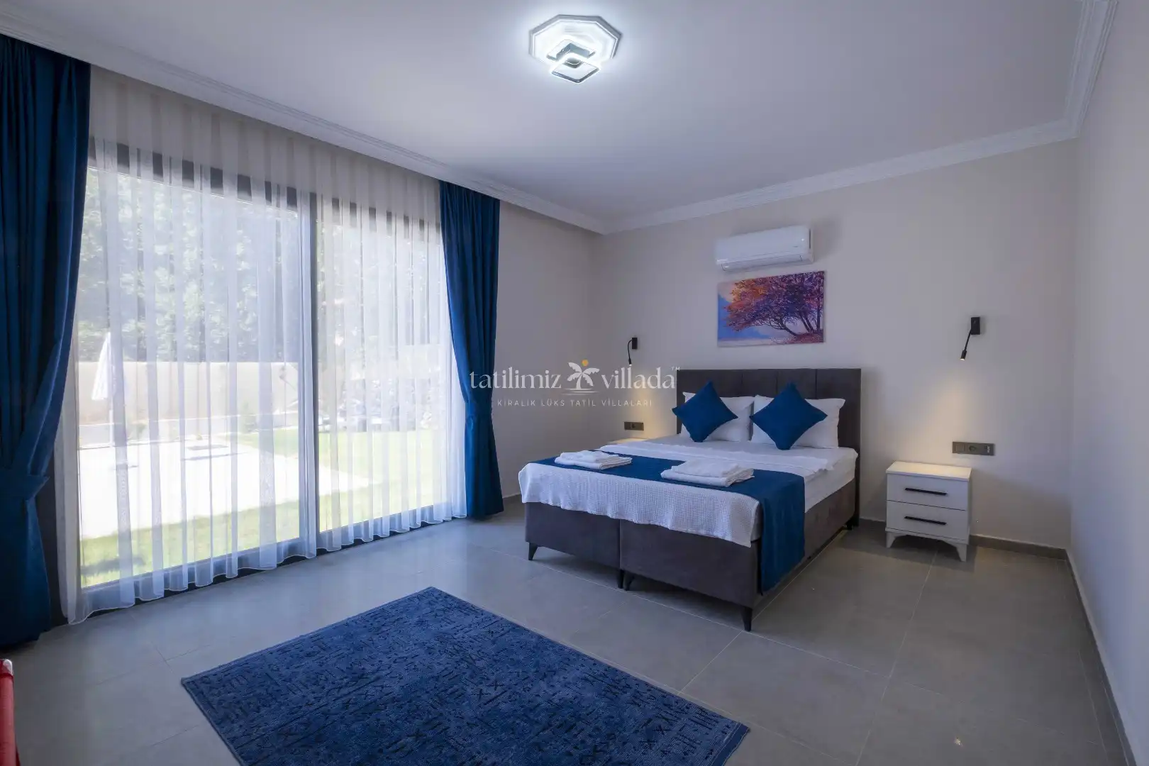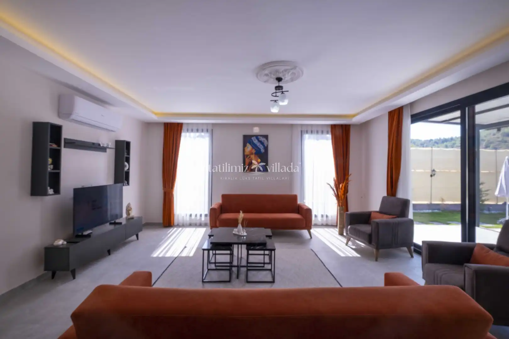 Villanın iç bölümünde kaliteli mobilyalarla döşenmiş geniş bir salon, tamamen ekipmanlı bir mutfak ve rahat bir oturma alanı yer almaktadır. Odalar ferah, aydınlık ve konfor ön planda tutularak hazırlanmıştır. Her odada günlük yaşamınızı kolaylaştıracak donanımlar bulunur. Villanın geniş kullanım alanı sayesinde misafirler hem kişisel alanlarına sahip olabilir hem de ortak yaşam alanlarında keyifli vakit geçirebilir.