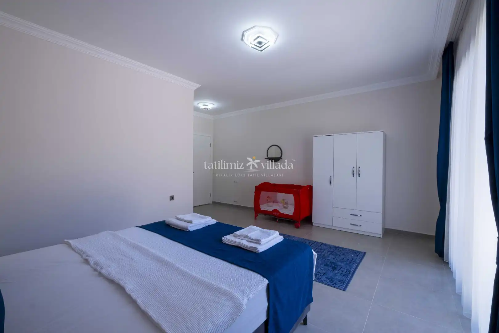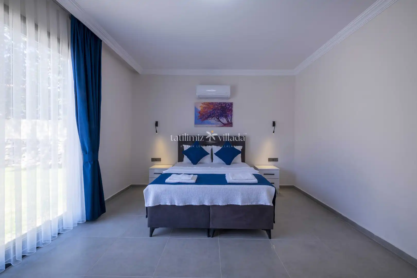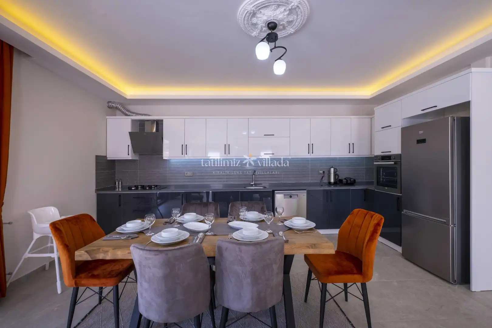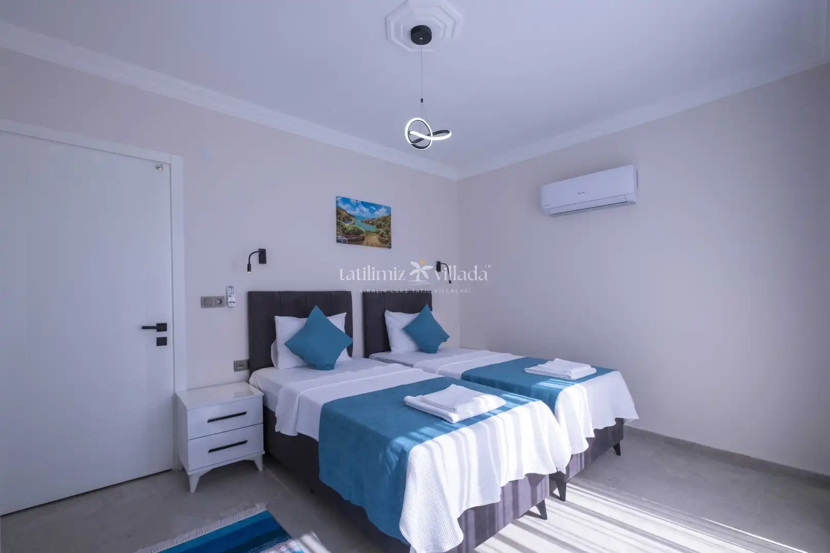 Villanın iç bölümünde kaliteli mobilyalarla döşenmiş geniş bir salon, tamamen ekipmanlı bir mutfak ve rahat bir oturma alanı yer almaktadır. Odalar ferah, aydınlık ve konfor ön planda tutularak hazırlanmıştır. Her odada günlük yaşamınızı kolaylaştıracak donanımlar bulunur. Villanın geniş kullanım alanı sayesinde misafirler hem kişisel alanlarına sahip olabilir hem de ortak yaşam alanlarında keyifli vakit geçirebilir.
