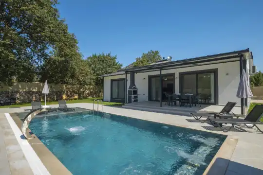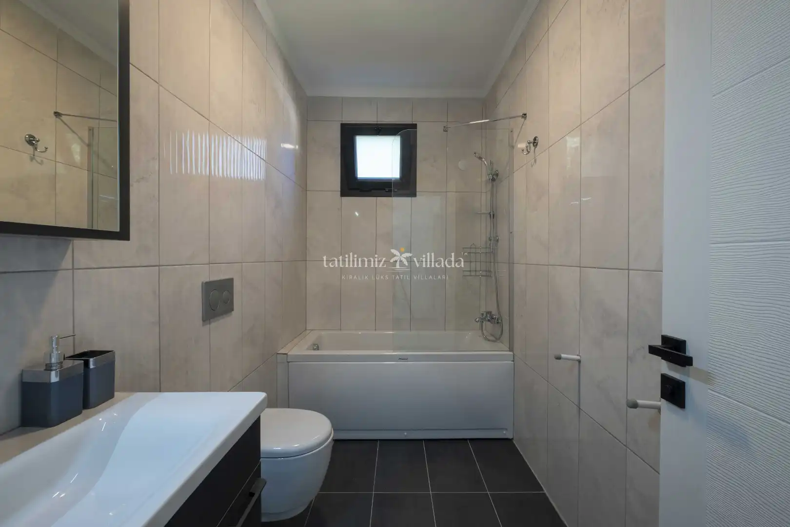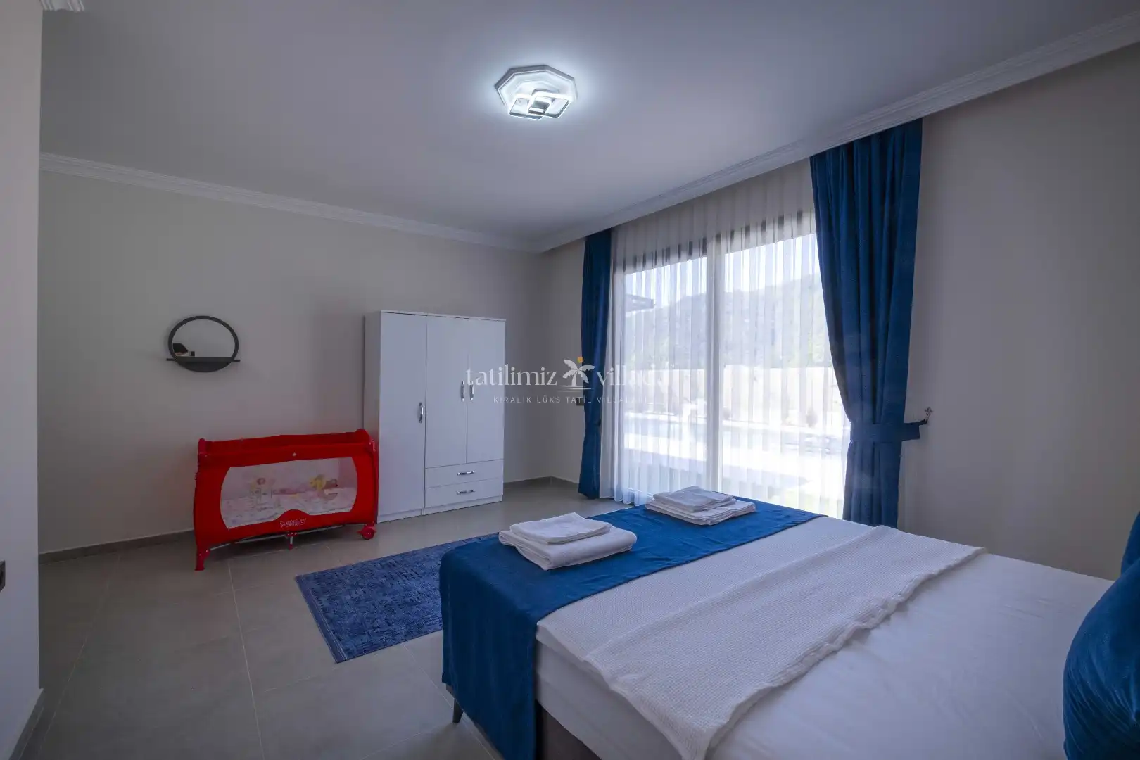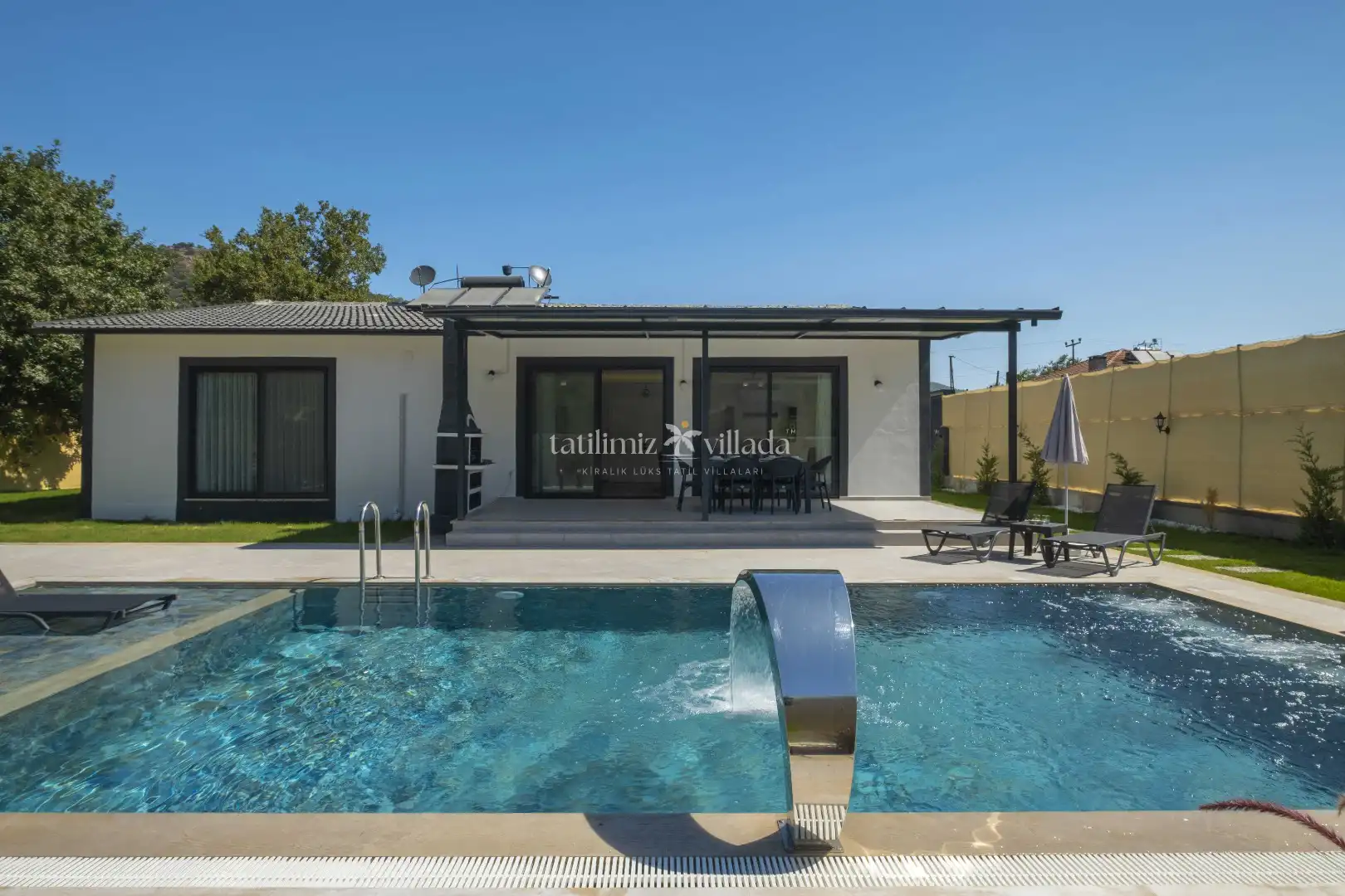 Villanın iç bölümünde kaliteli mobilyalarla döşenmiş geniş bir salon, tamamen ekipmanlı bir mutfak ve rahat bir oturma alanı yer almaktadır. Odalar ferah, aydınlık ve konfor ön planda tutularak hazırlanmıştır. Her odada günlük yaşamınızı kolaylaştıracak donanımlar bulunur. Villanın geniş kullanım alanı sayesinde misafirler hem kişisel alanlarına sahip olabilir hem de ortak yaşam alanlarında keyifli vakit geçirebilir.