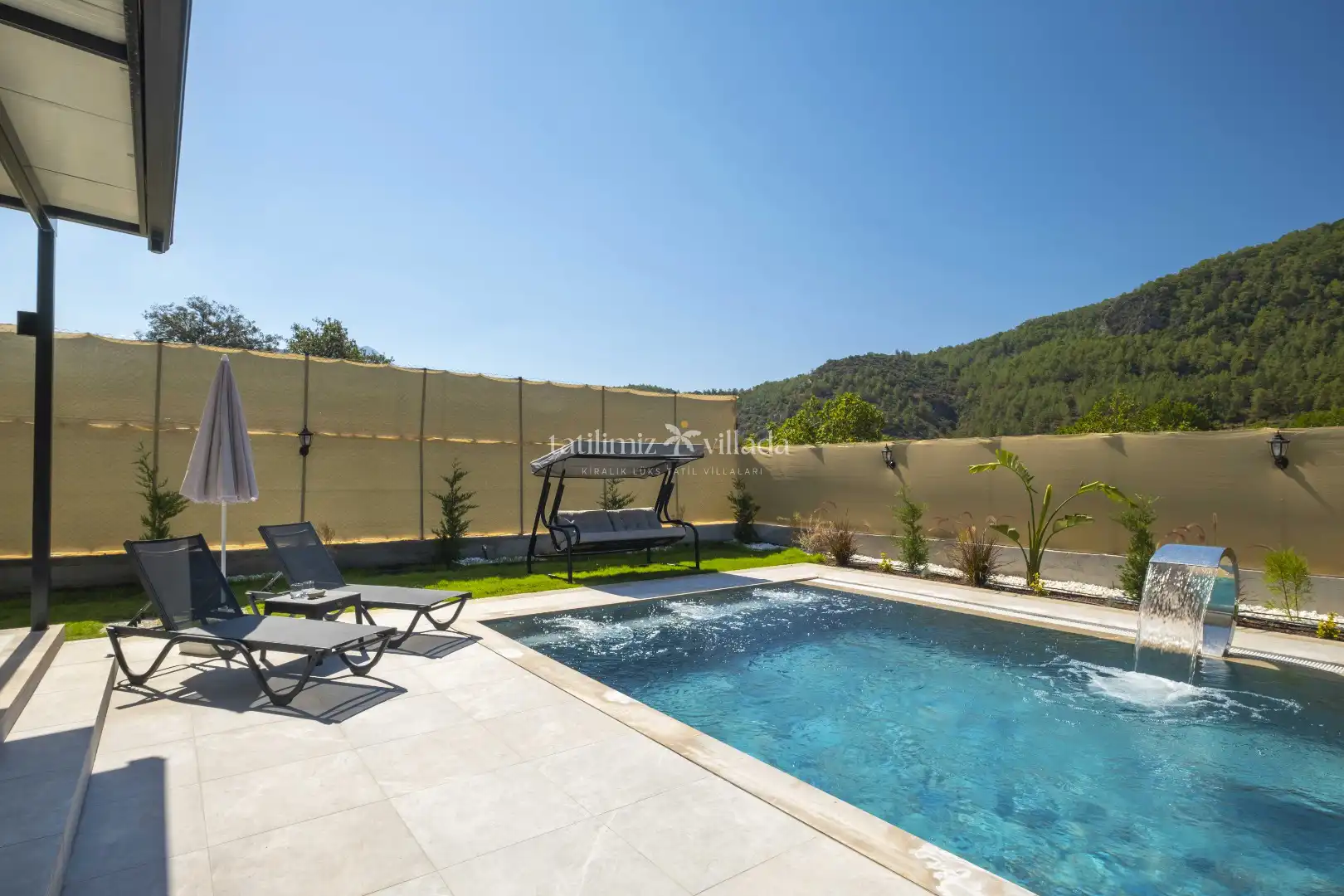 Villa Ruka, Fethiye’nin doğal güzellikleriyle ünlü Kayaköy mevkiinde yer alan, 3+1 oda yapısıyla geniş ve konforlu bir konaklama deneyimi sunan özel bir tatil villasıdır. Doğayla iç içe, huzurlu bir atmosferde konumlanan villamız; modern mimarisi, ferah iç alanları ve özenle düzenlenmiş bahçe ortamıyla misafirlerine sakin bir tatil fırsatı sağlar. Geniş aileler, arkadaş grupları ya da sakin ve konforlu bir tatil arayışında olan misafirler için ideal bir seçenek olan Villa Ruka, ihtiyaç duyabileceğiniz tüm detaylar düşünülerek tasarlanmıştır.