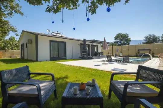 Dış alanda yer alan özel yüzme havuzu, gün boyunca güneşin tadını çıkarabileceğiniz kullanışlı bir bahçe alanı ve dinlenebileceğiniz oturma grupları ile donatılmıştır. Çevresi doğa ile çevrili olan bu alan, günün her anında huzurlu bir atmosfer sunar. Akşam saatlerinde bahçe alanında keyifli sohbetler edebilir, güne ferah bir manzara eşliğinde başlayabilirsiniz.