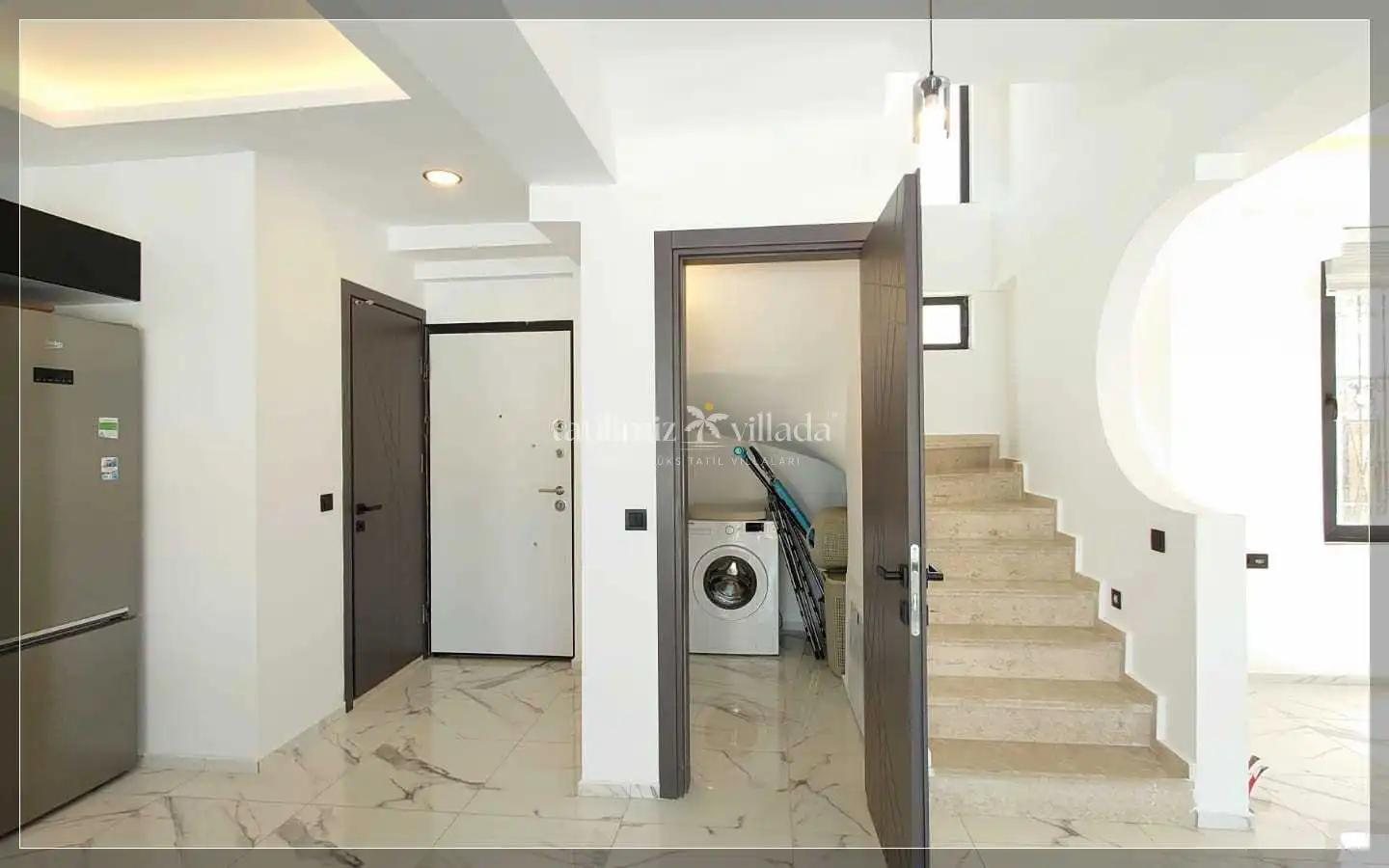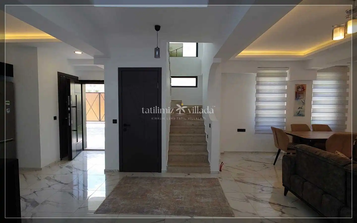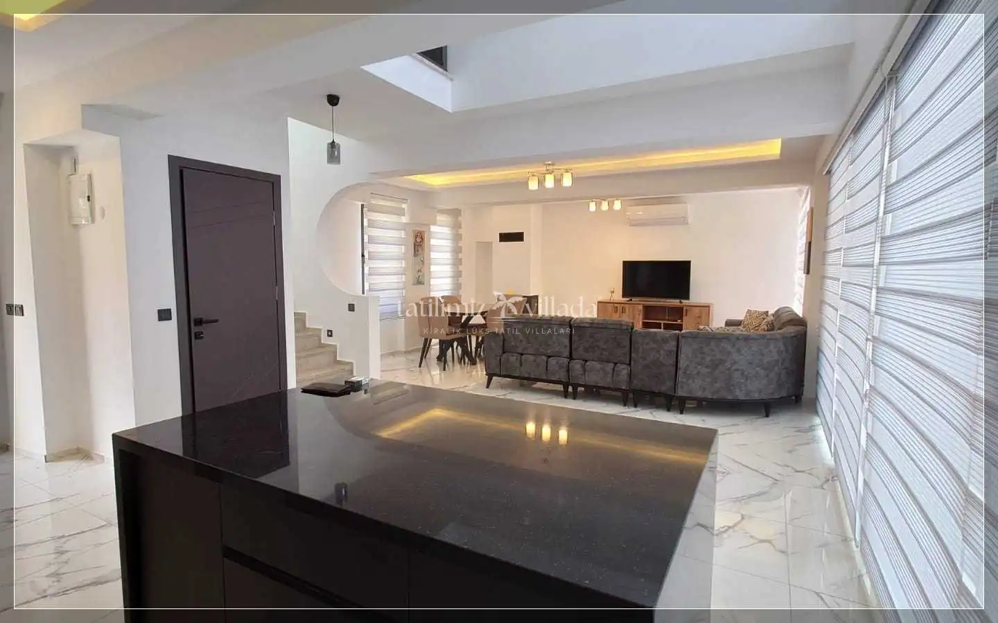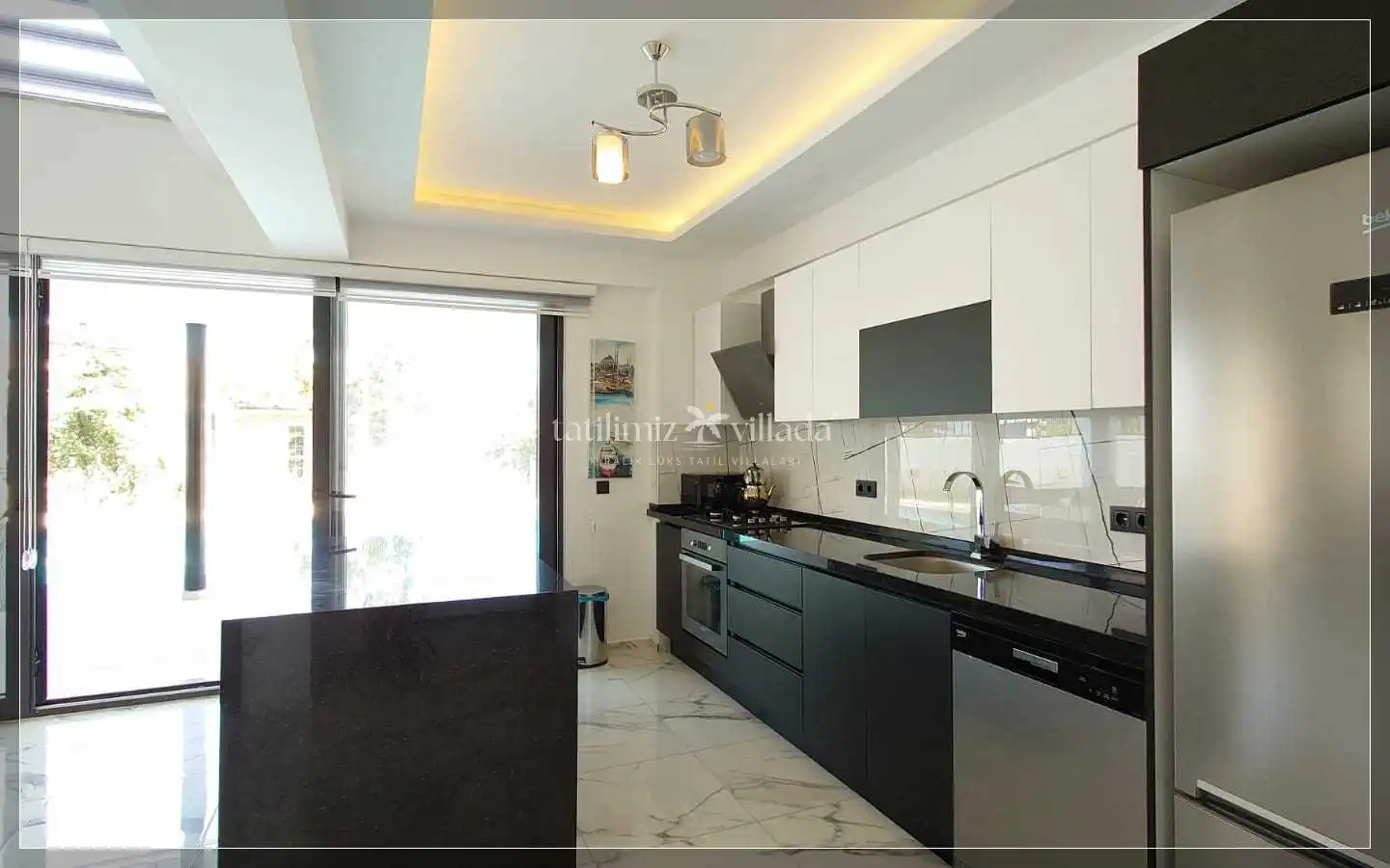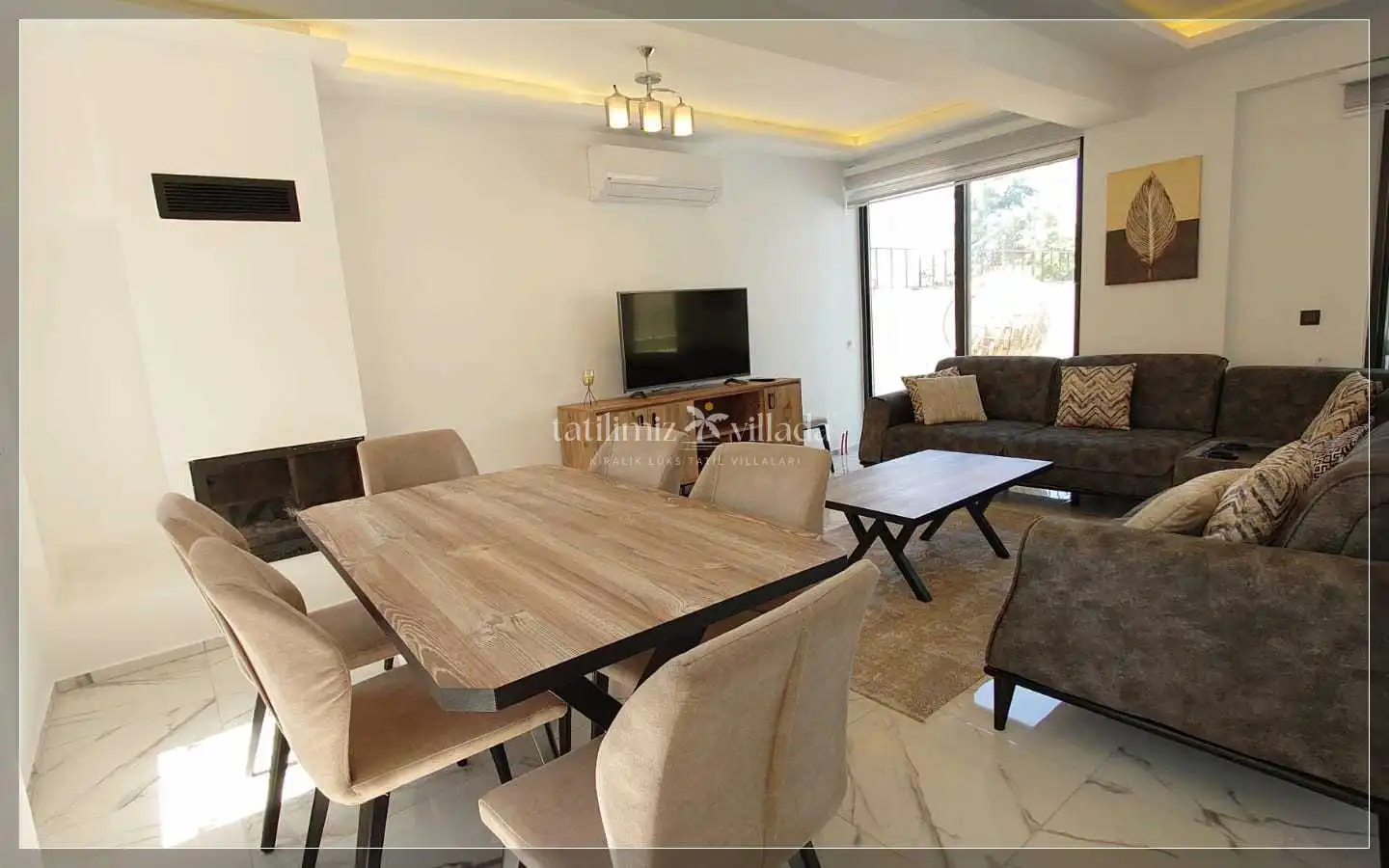Villa içerisinde, modern ve şık bir tasarıma sahip olan geniş bir oturma odası ve tam donanımlı bir Amerikan mutfak bulunmaktadır. Villamızda tatil boyunca ihtiyaç duyabileceğiniz her türlü araç gereç ve ekipman mevcuttur.