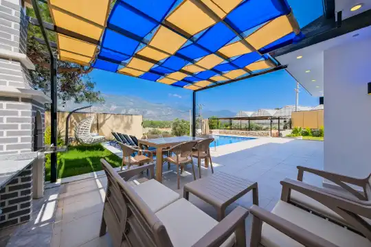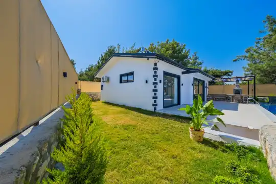 Villanın en özel alanlarından biri, geniş bahçesi içinde yer alan özel yüzme havuzu ve jakuzi alanıdır. Burada gün boyu güneşin ve doğanın tadını çıkarabilir, şezlonglarda dinlenebilir ve sevdiklerinizle birlikte keyifli vakit geçirebilirsiniz. Bahçe alanı, açık hava yemekleri ve barbekü keyfi yapmak isteyen misafirler için de idealdir.