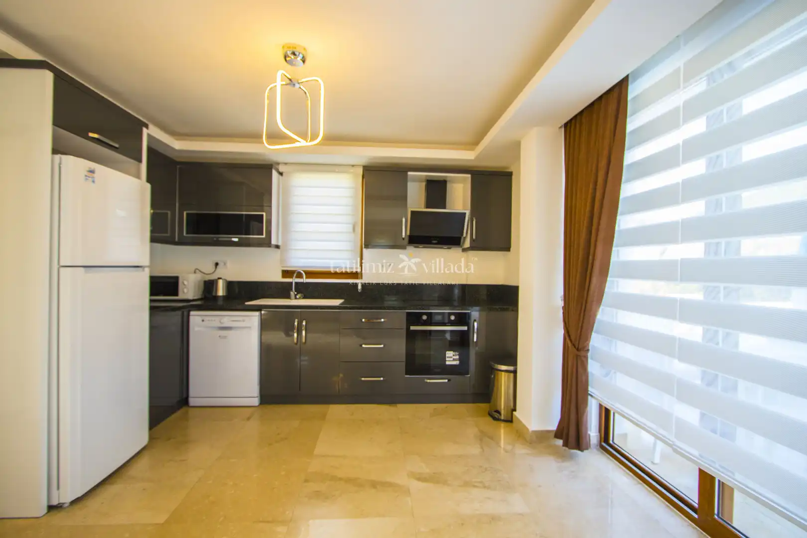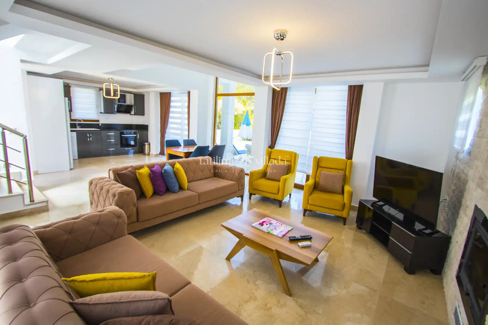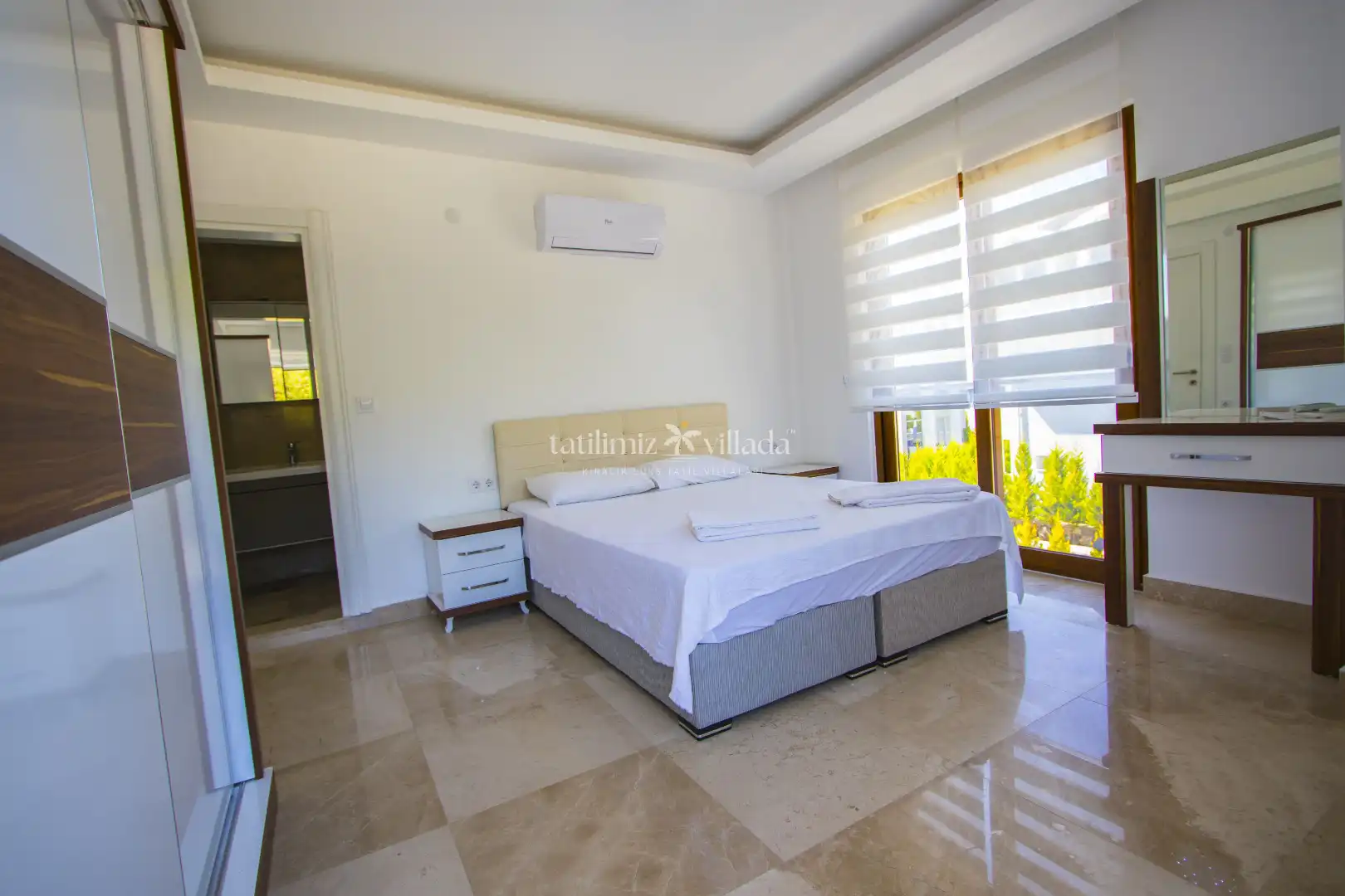 Villa Sammy'nin geniş yatak odaları, suit banyoları ve modern mutfak olanakları, misafirlerinin tüm ihtiyaçlarını karşılayacak şekilde tasarlanmıştır. Villamız, 8 kişilik konaklama kapasitesine sahip olup, hem büyük aileler hem de arkadaş grupları için ideal bir seçenektir. Modern iç tasarımıyla, her bir odası size konforlu bir dinlenme alanı sunar. Geniş camlardan doğa manzarasının tadını çıkarabilir, gün boyunca ferah bir ortamda vakit geçirebilirsiniz.