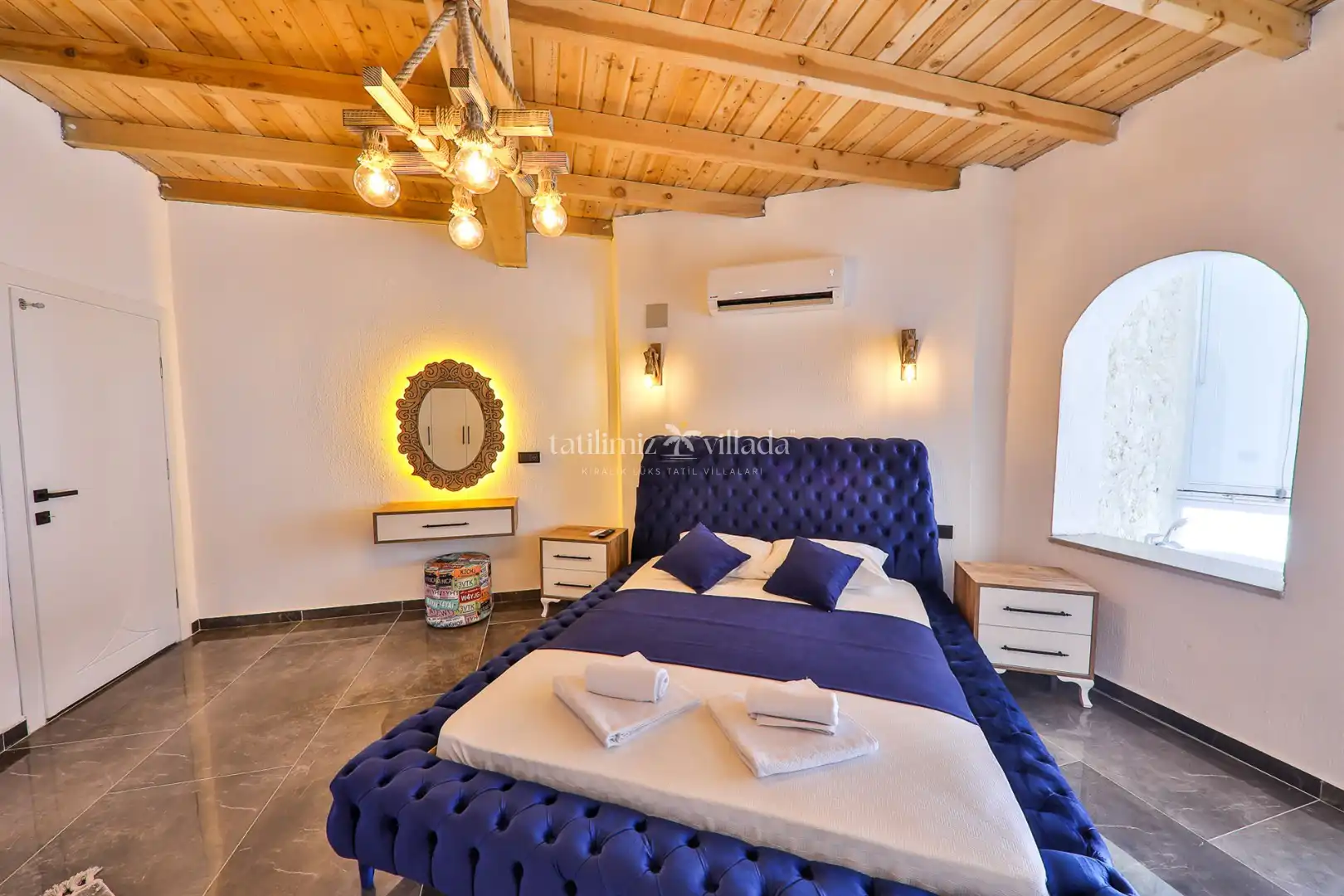 Toplam 3 yatak odasına sahip olan Villa Sancak 1, maksimum 6 kişilik konaklama kapasitesiyle aileler ve arkadaş grupları için uygundur. Geniş ve ferah yaşam alanları modern bir anlayışla tasarlanmış olup, misafirlerin ihtiyaç duyabileceği tüm detaylar özenle düşünülmüştür. Şık salonu, tam donanımlı mutfağı ve konforlu yatak odaları sayesinde ev rahatlığını tatilde de yaşatır.