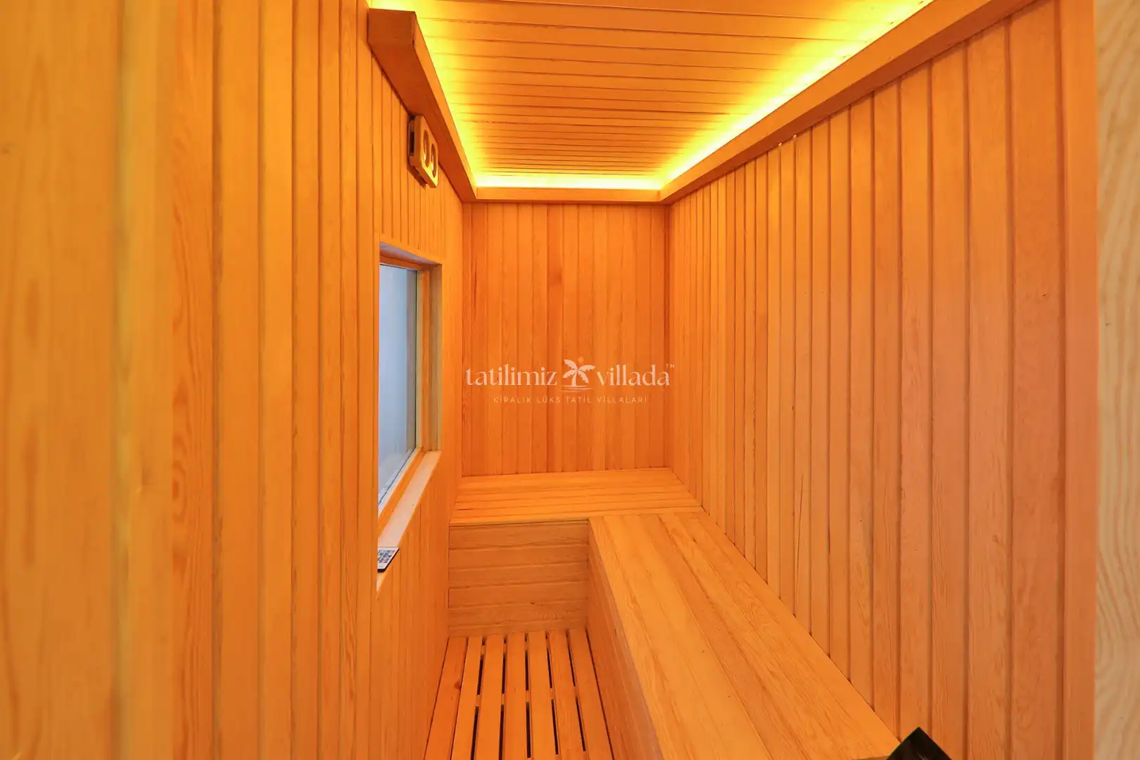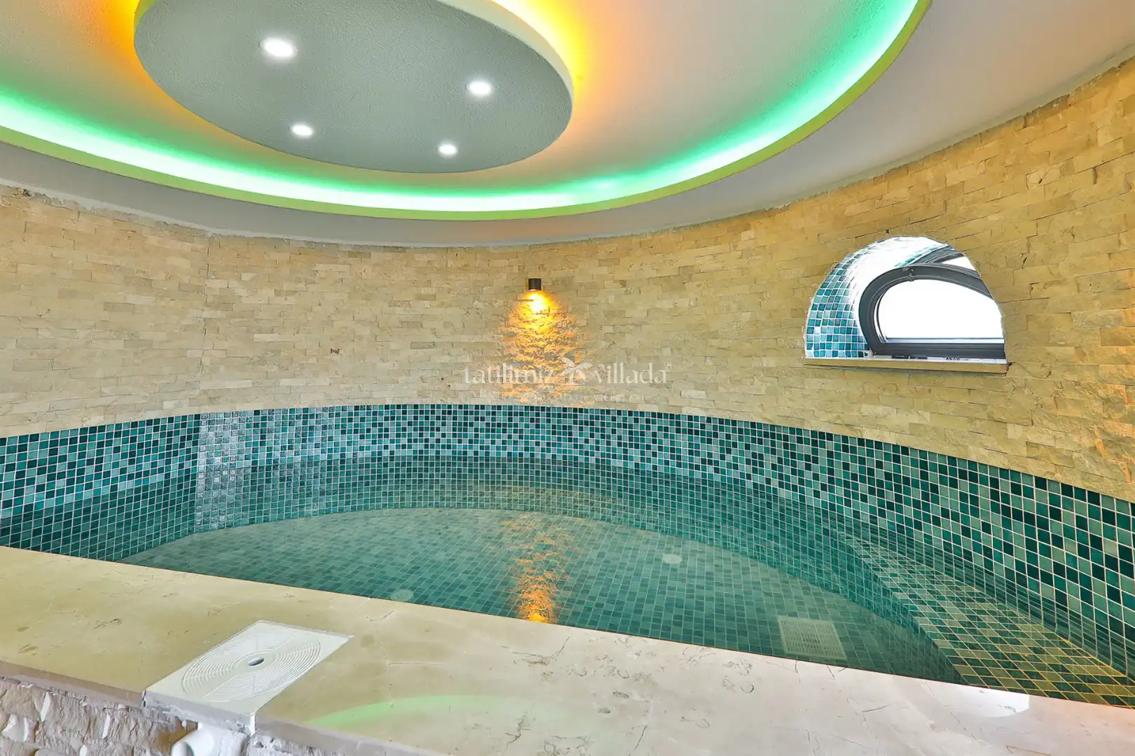 Villanın öne çıkan özelliklerinden biri olan ısıtmalı kapalı yüzme havuzu, yaz-kış yüzme keyfi yaşamanıza olanak tanır. Ayrıca villada bulunan jakuzi, sauna ve Türk hamamı gibi özel alanlar sayesinde tatil boyunca dinlenebilir, günün yorgunluğunu atabilirsiniz. Bu özellikleriyle Villa Sancak 1, kapalı havuzlu Fethiye kiralık villa arayan misafirler için öne çıkan bir seçenektir.