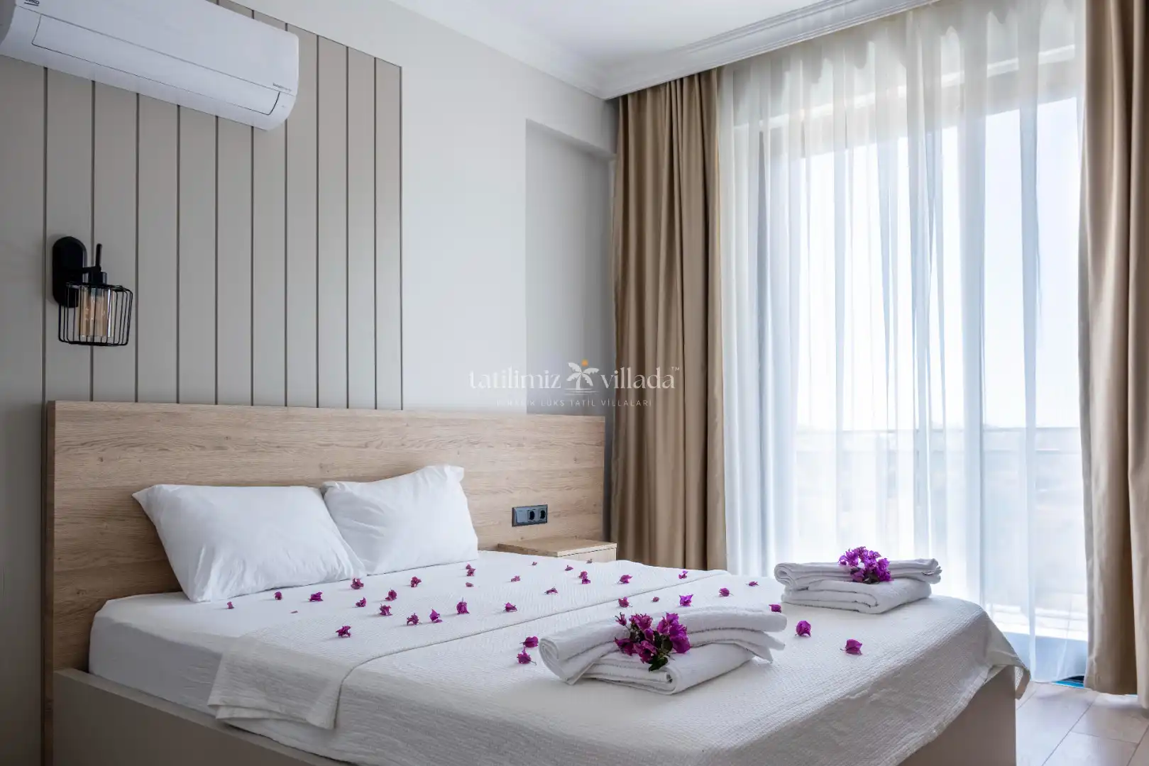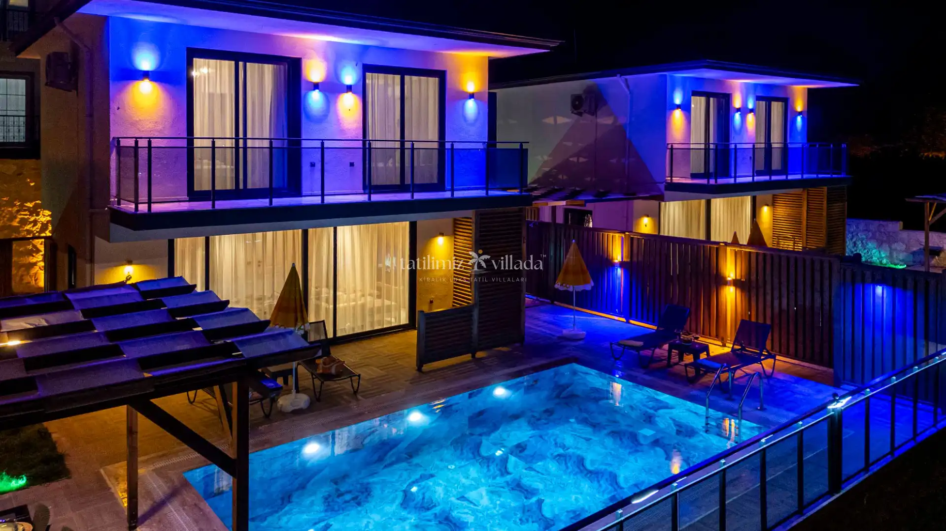 Modern mimarisi ve konforlu yaşam alanlarıyla öne çıkan villamızda her iki yatak odasında da özel banyo ve tuvalet bulunmaktadır. Geniş havuz terası ve 4x6 metre ölçülerindeki özel yüzme havuzu sayesinde gün boyu keyifli vakit geçirebilirsiniz. İnternet, su, elektrik ve gaz kullanımı fiyatlara dahildir. Havuz ve bahçe bakımı düzenli olarak yapılmaktadır.