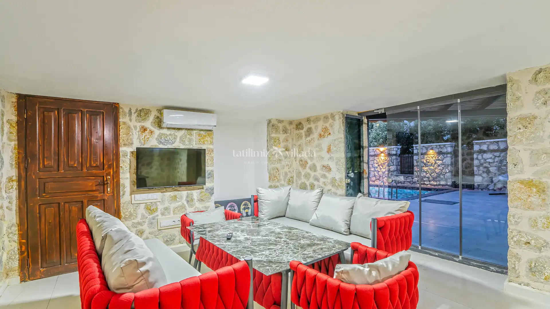 Villa içerisinde bulunan ısıtmalı havuz, Türk hamamı, sauna ve jaluzili havuz alanı sayesinde yaz-kış konforlu ve keyifli bir tatil imkanı sunmaktadır. Korunaklı yapısı sayesinde muhafazakar aileler gönül rahatlığıyla konaklayabilir.