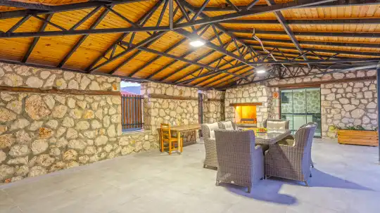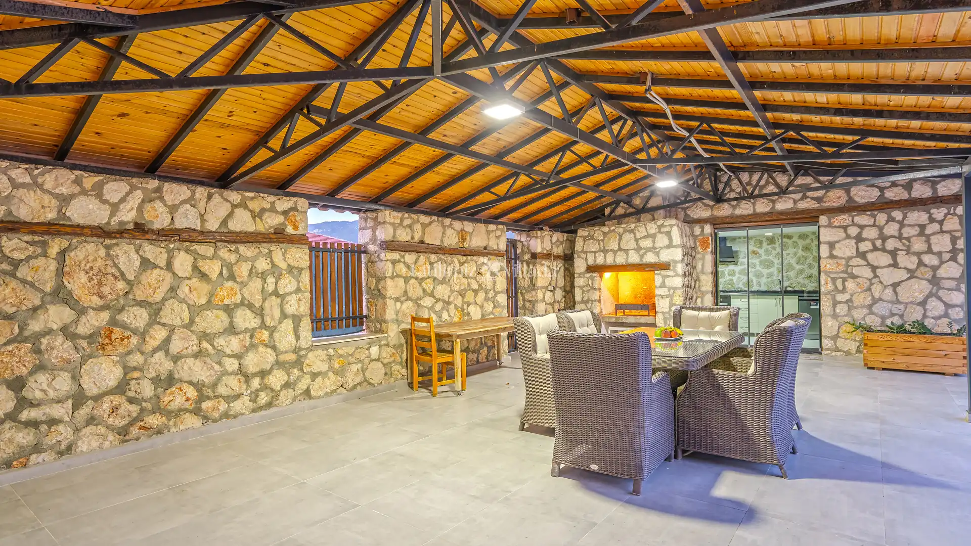Kalkan Bezirgan bölgesinde bulunan Villa Şat, 3 yatak odası ve 6 kişilik konaklama kapasitesiyle aileler ve muhafazakar misafirler için ideal bir Kalkan kiralık villa seçeneğidir. Kalkan’ın eşsiz doğasıyla çevrili Bezirgan mevkiinde yer alan villamız, taş mimarisi ve lüks tasarımıyla dikkat çekmektedir.