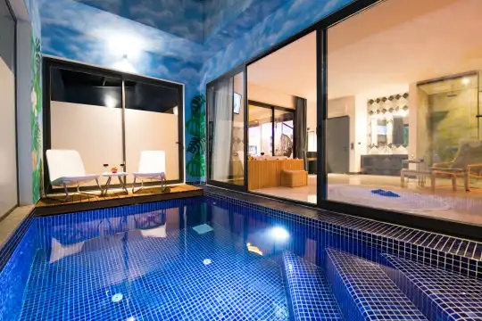 Modern ve şık iç tasarımıyla dikkat çeken Villa Sedef, her ayrıntısı özenle düşünülerek konforlu bir tatil imkanı sunmak için dizayn edilmiştir. Hem kapalı havuz hem de jakuzili alan, misafirlerinin mahremiyetini ön planda tutarak, yalnızca onlara özel bir tatil deneyimi yaratmaktadır.