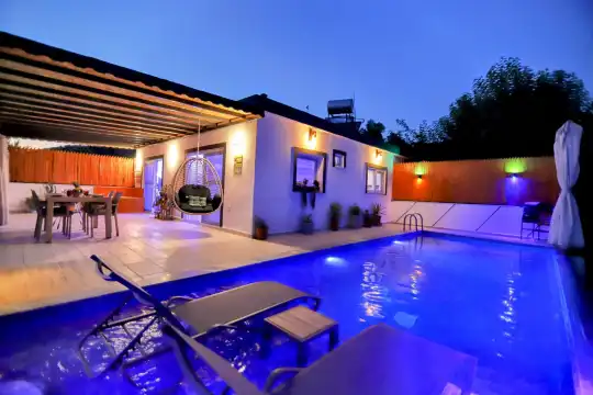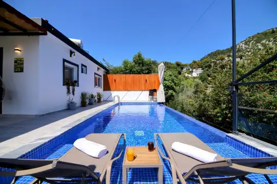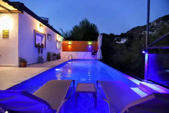 Kalkan İslamlar Mevkii'nde yer alan villa, doğa ile iç içe, huzurlu bir tatil için mükemmel bir seçenektir. Muhafazakar havuz alanı sayesinde, mahremiyetine özen gösteren misafirler için güvenli bir yüzme deneyimi sunar. Doğa manzaralı konumu, çevredeki yeşil alanlarla birleşerek sakin ve dinlendirici bir atmosfer yaratır.