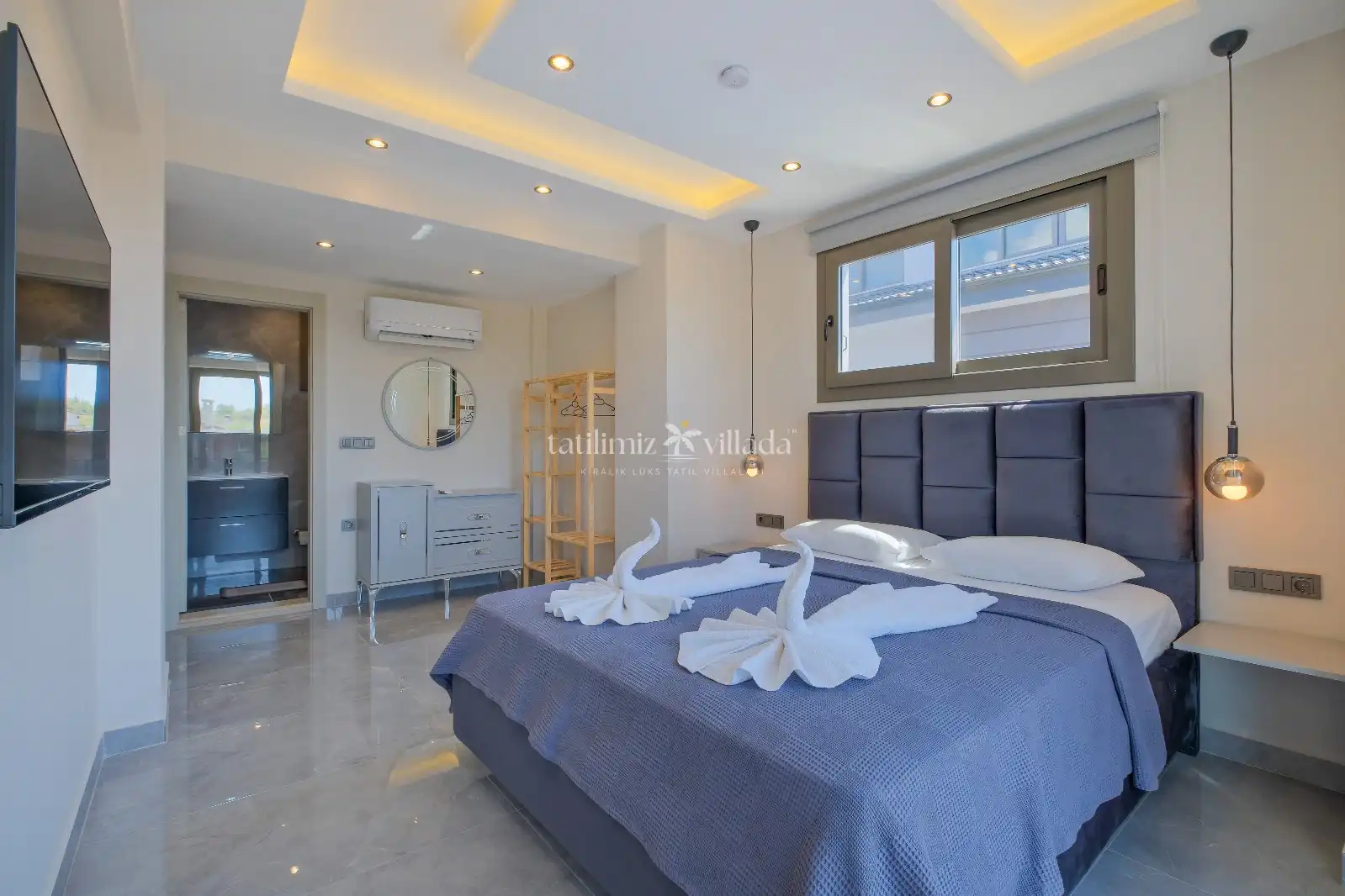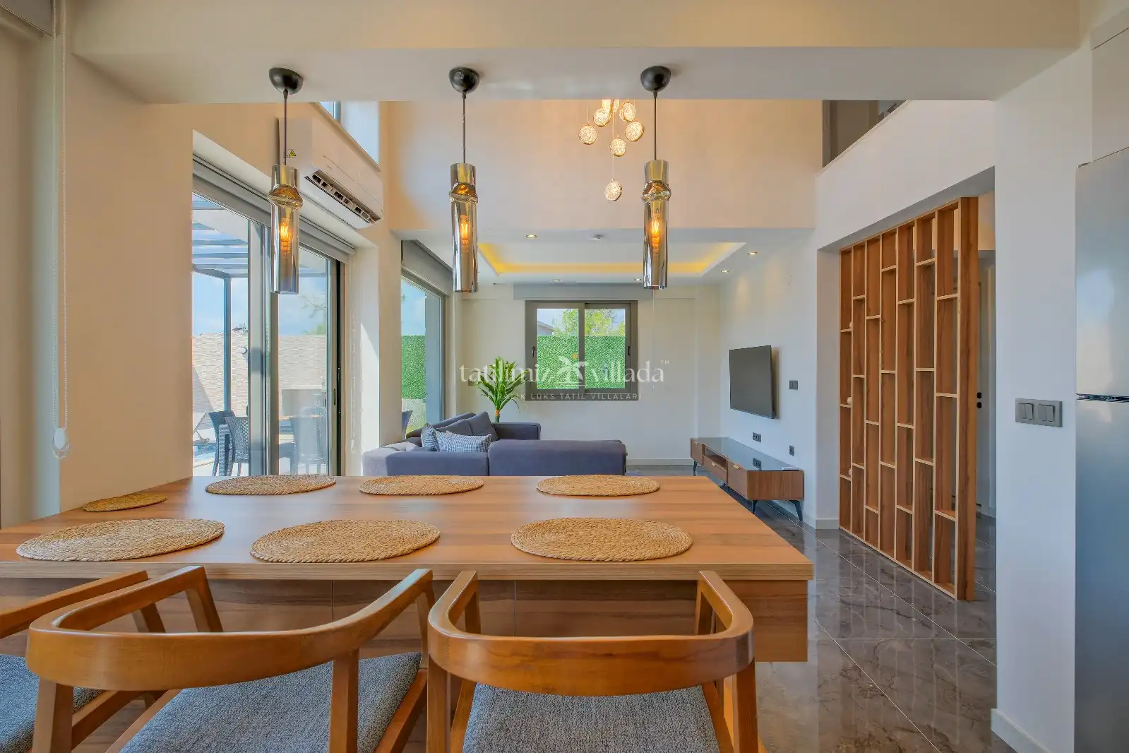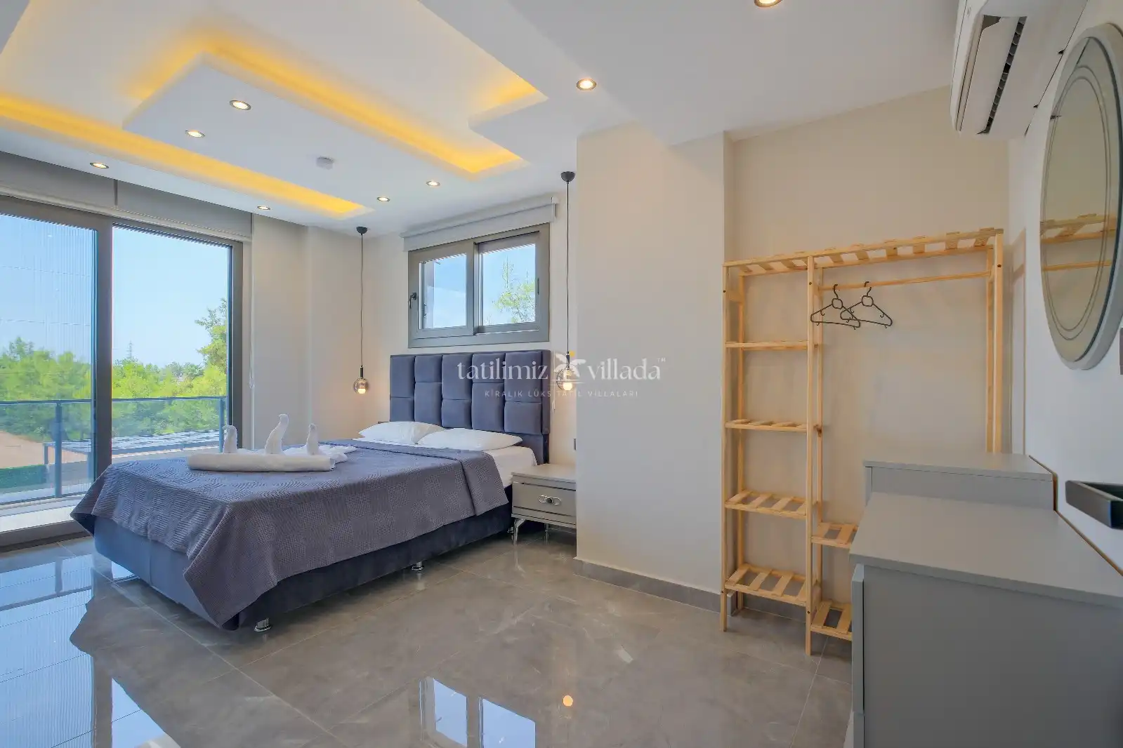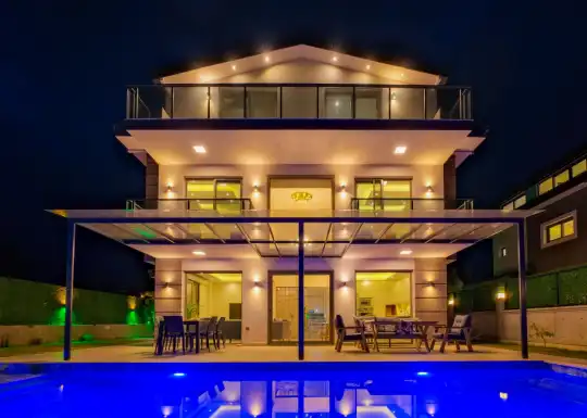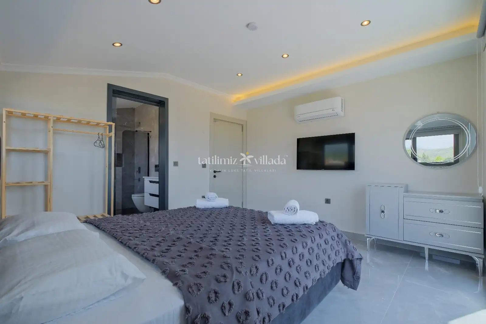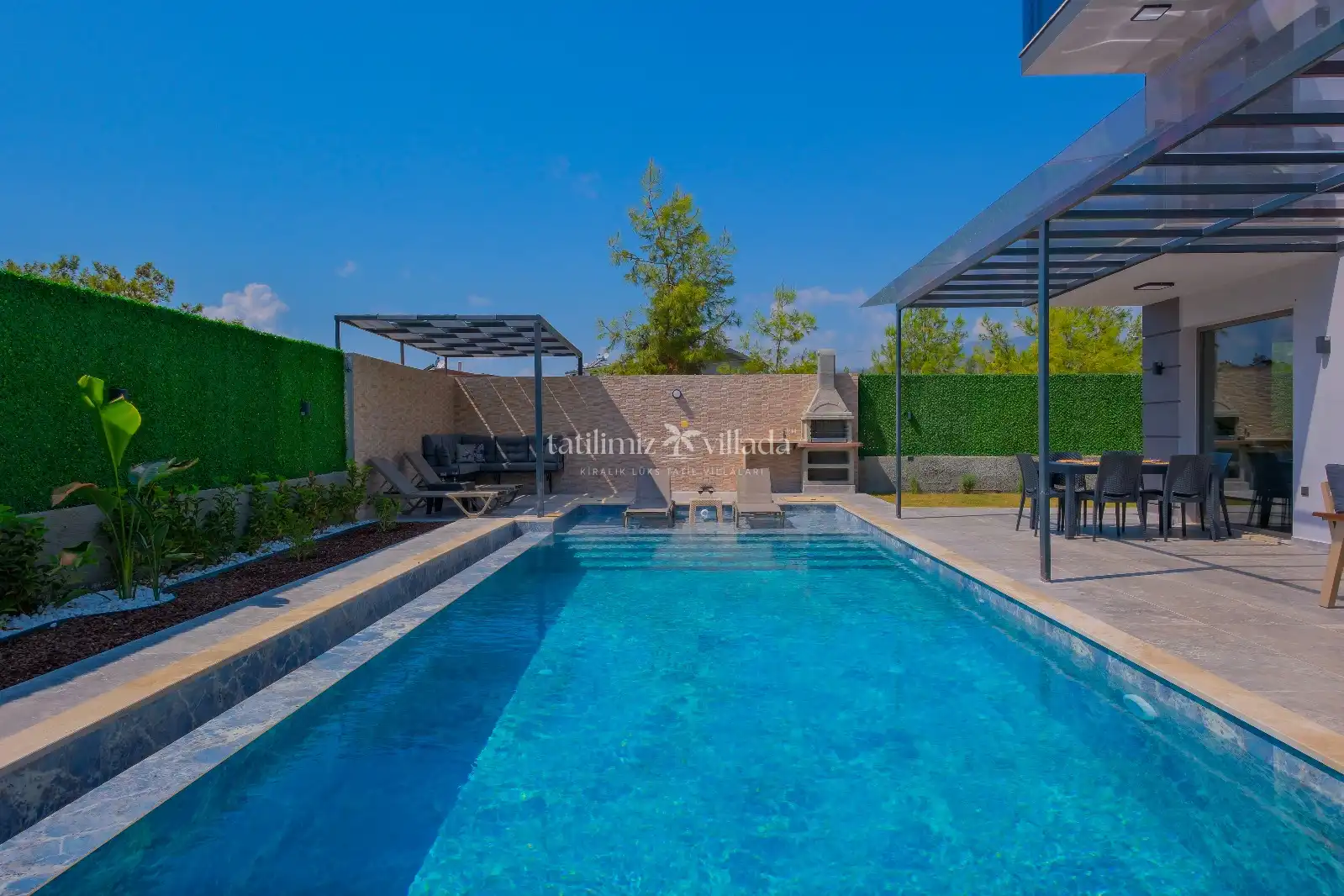 Modern ve kullanışlı iç mekân tasarımıyla Fethiye muhafazakar kiralık villa arayan misafirler için konforlu bir tatil sunar. Villada yer alan geniş salon, tam donanımlı mutfak ve özenle hazırlanmış odalar, keyifli bir konaklama deneyimi sağlar.
