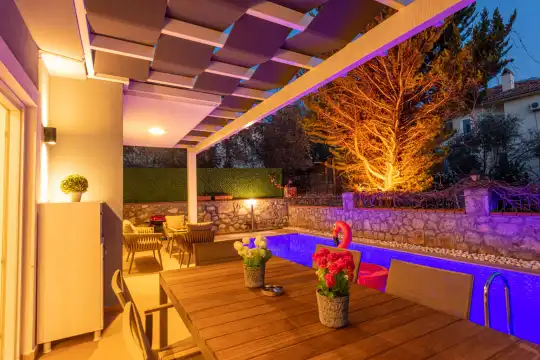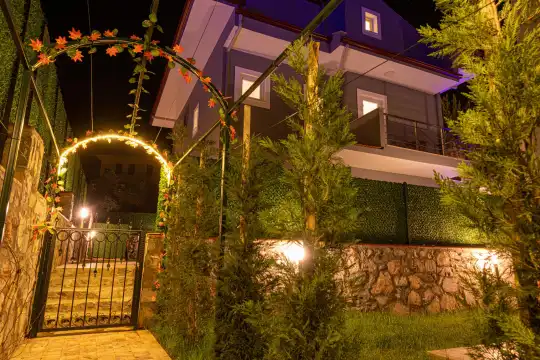 Toplam 5 yatak odasından oluşmuş, 9 kişi konaklama kapasitesine sahiptir. Geniş aileler ve kalabalık arkadaş grupları için oldukça idealdir. Oldukça şık ve modern bir şekilde döşenmiş olan villamızda misafirlerimiz için herşey düşünülmüştür. Havuz terasında bulunan şezlonglarda güneşlenebilir, bahçe masasında muhteşem yemekler yiyebilir, salıncakta sallanıp keyifli dakikalar geçirebilirsiniz.
