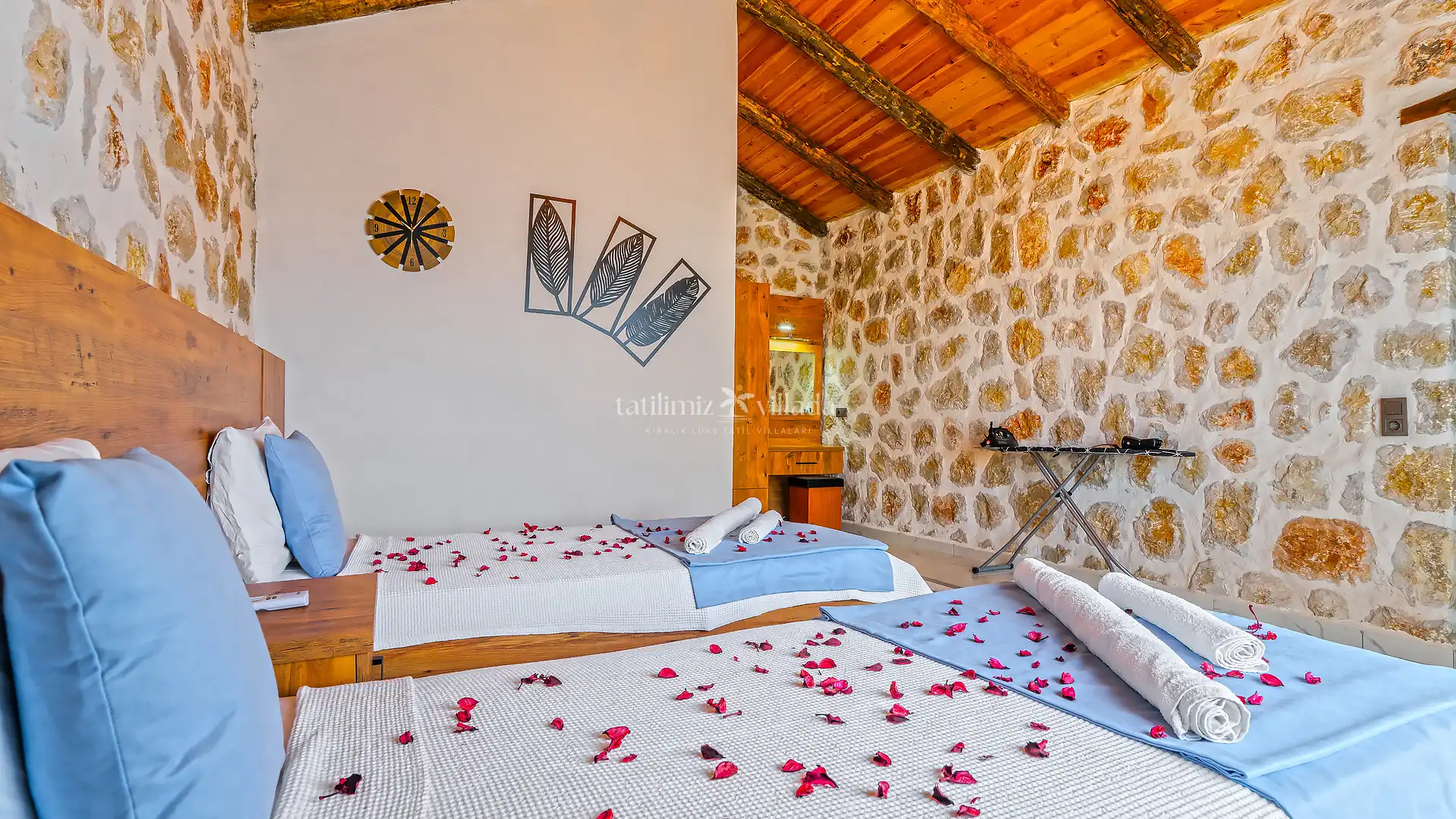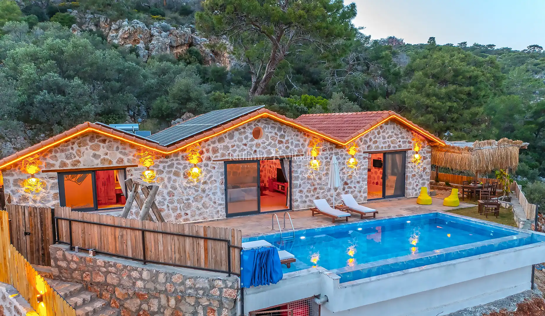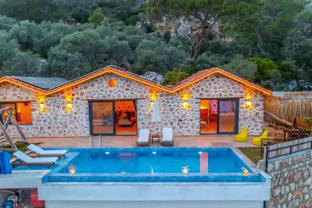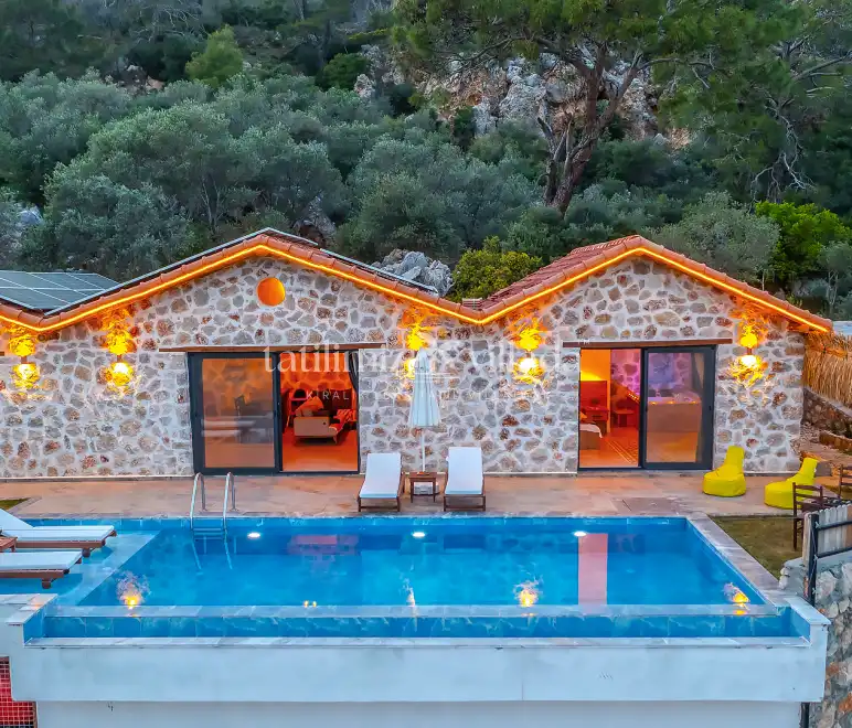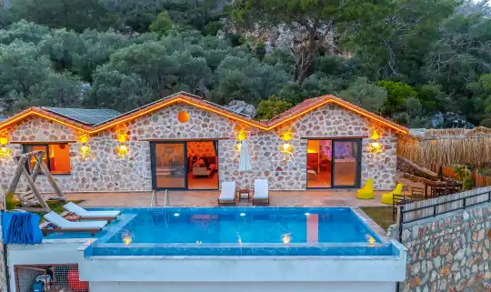 Kiralık tatil villamız, Patara Yalı bölgesinde tarihi ve doğal güzelliklerle çevrili, deniz ve doğa manzarasına hakim özel bir konumda yer almaktadır. Taş ve ahşabın uyumuyla inşa edilen villa, estetik mimarisiyle dikkat çekmektedir. 2 yatak odası ve 4 kişilik konaklama kapasitesine sahip olan Villa Serencia, balayı çiftleri ve muhafazakar aileler için özel olarak öne çıkan bir tatil seçeneğidir. Korunaklı havuz terası sayesinde dışarıdan görünmeyen yapısı ile tamamen gözlerden uzak, mahremiyet odaaklı bir konaklama sunmaktadır.