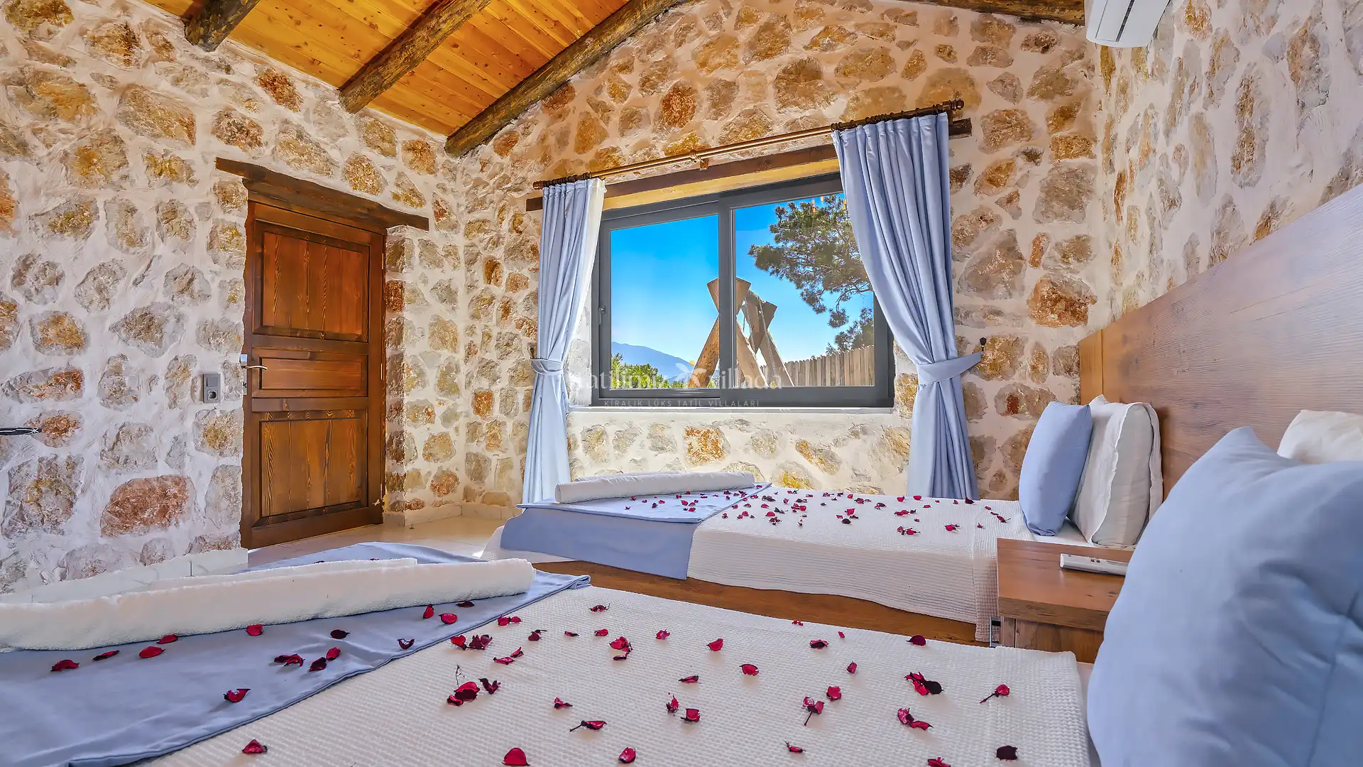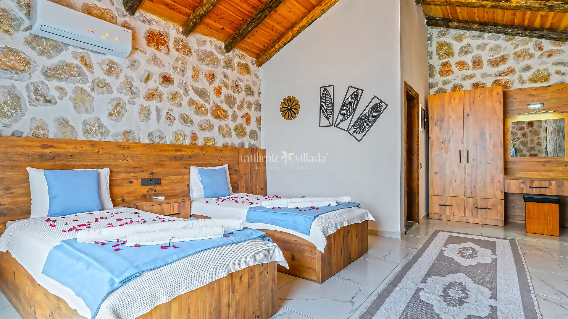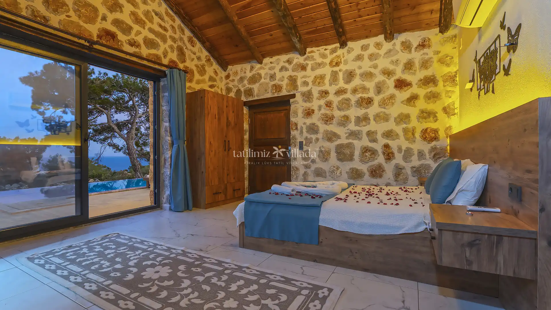 Kiralık tatil villamız, Patara Yalı bölgesinde tarihi ve doğal güzelliklerle çevrili, deniz ve doğa manzarasına hakim özel bir konumda yer almaktadır. Taş ve ahşabın uyumuyla inşa edilen villa, estetik mimarisiyle dikkat çekmektedir. 2 yatak odası ve 4 kişilik konaklama kapasitesine sahip olan Villa Serencia, balayı çiftleri ve muhafazakar aileler için özel olarak öne çıkan bir tatil seçeneğidir. Korunaklı havuz terası sayesinde dışarıdan görünmeyen yapısı ile tamamen gözlerden uzak, mahremiyet odaaklı bir konaklama sunmaktadır.