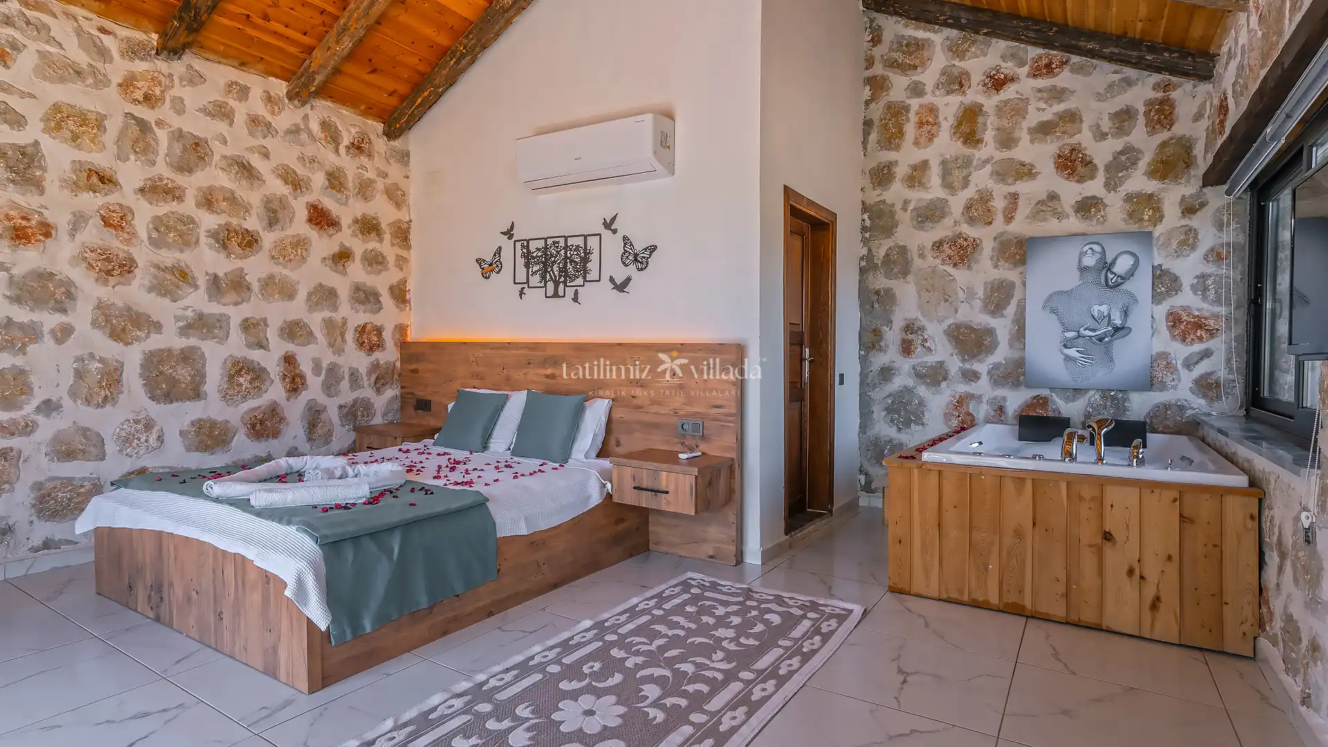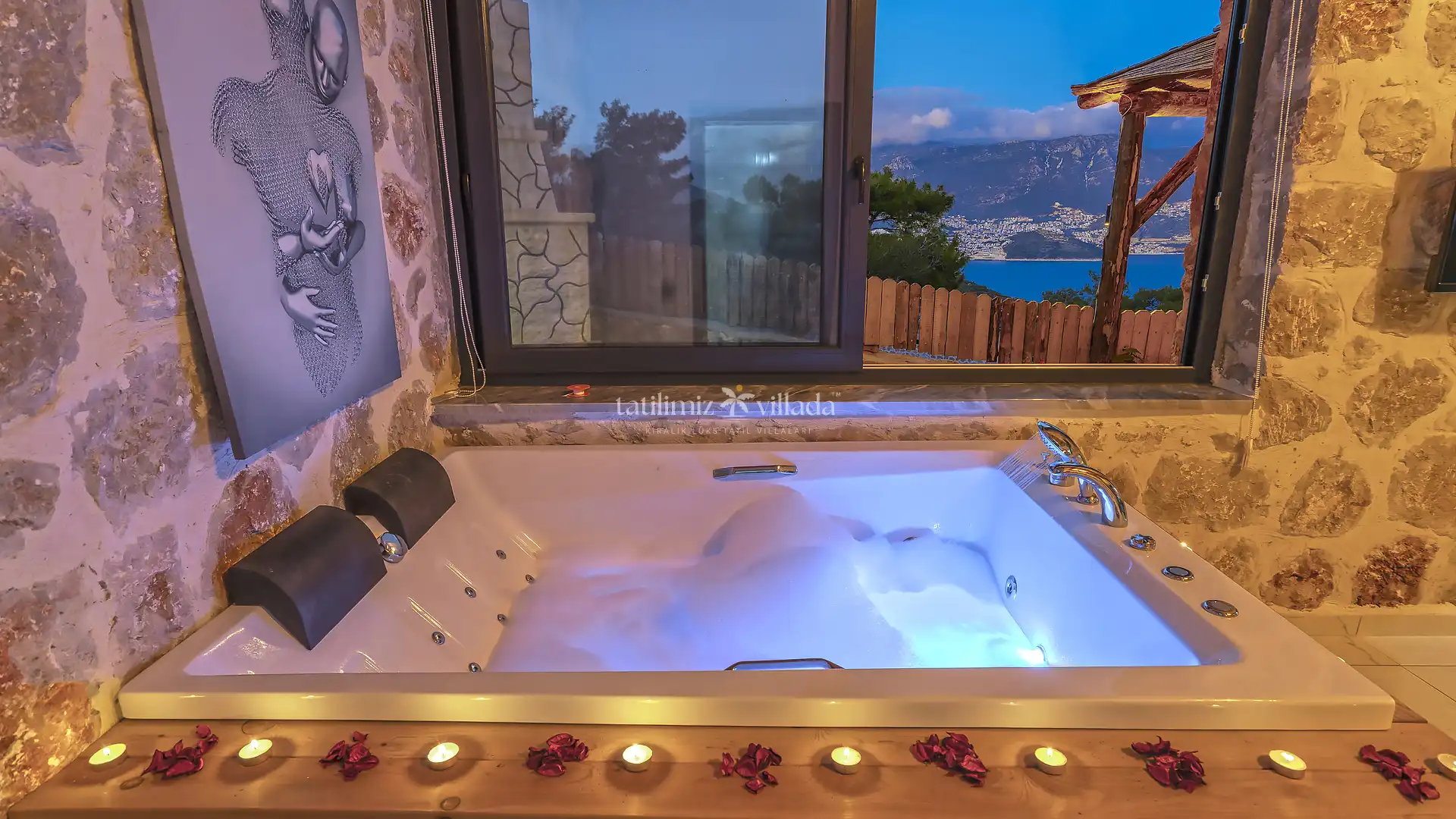 Villanın suit yatak odasında yer alan çift kişilik jakuzi, romantik detaylarıyla özellikle balayı tatili planlayan misafirler için güçlü bir avantaj sağlamaktadır. Doğa ile iç içe, sessiz ve huzurlu atmosferiyle Villa Serencia, şehir hayatından uzaklaşmak isteyenler için ideal bir kaçış noktasıdır.