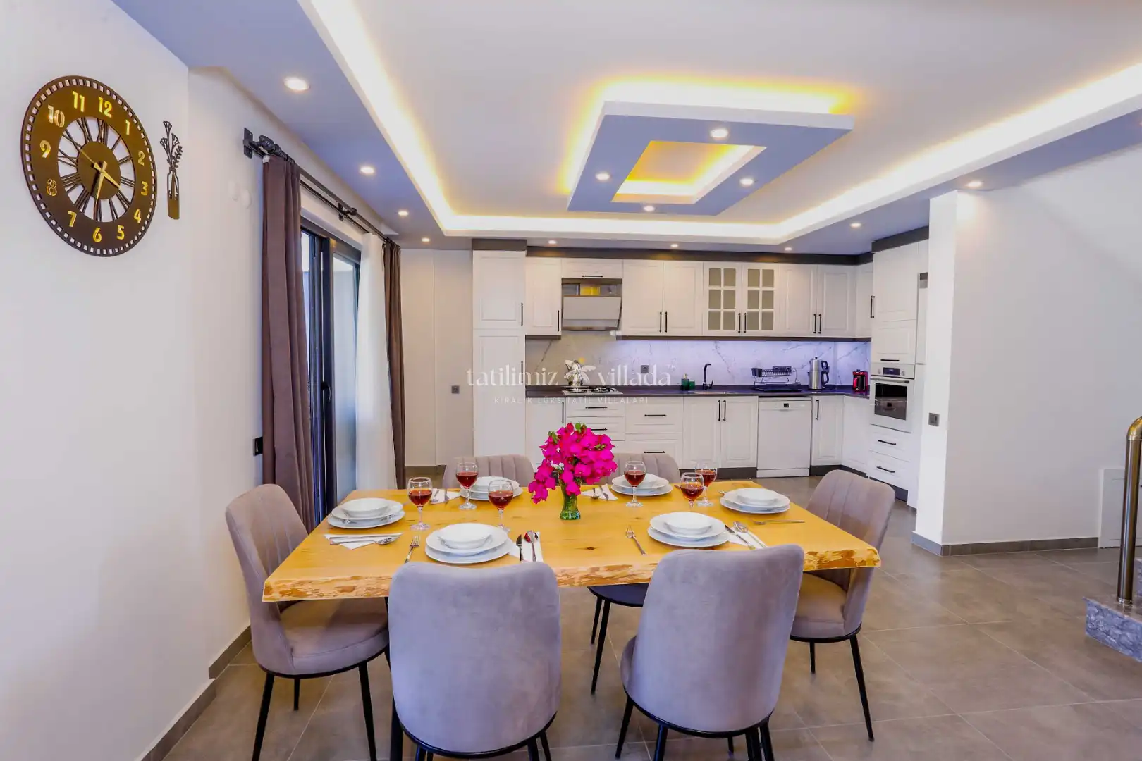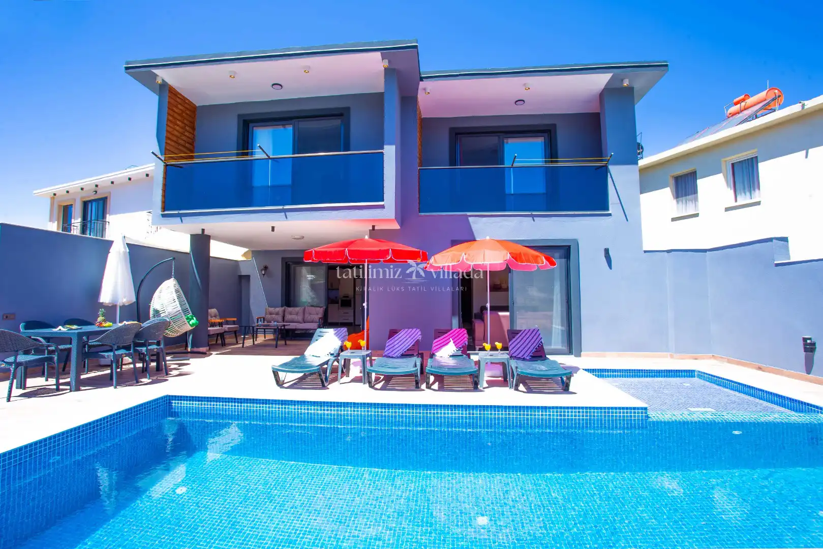 Modern dizaynı ve ferah yaşam alanlarıyla öne çıkan bu Kaş kiralık villa, geniş aileler ve kalabalık arkadaş grupları için idealdir. Özel havuz alanı ve bahçesiyle gözlerden uzak, huzurlu bir konaklama imkânı sağlamaktadır.