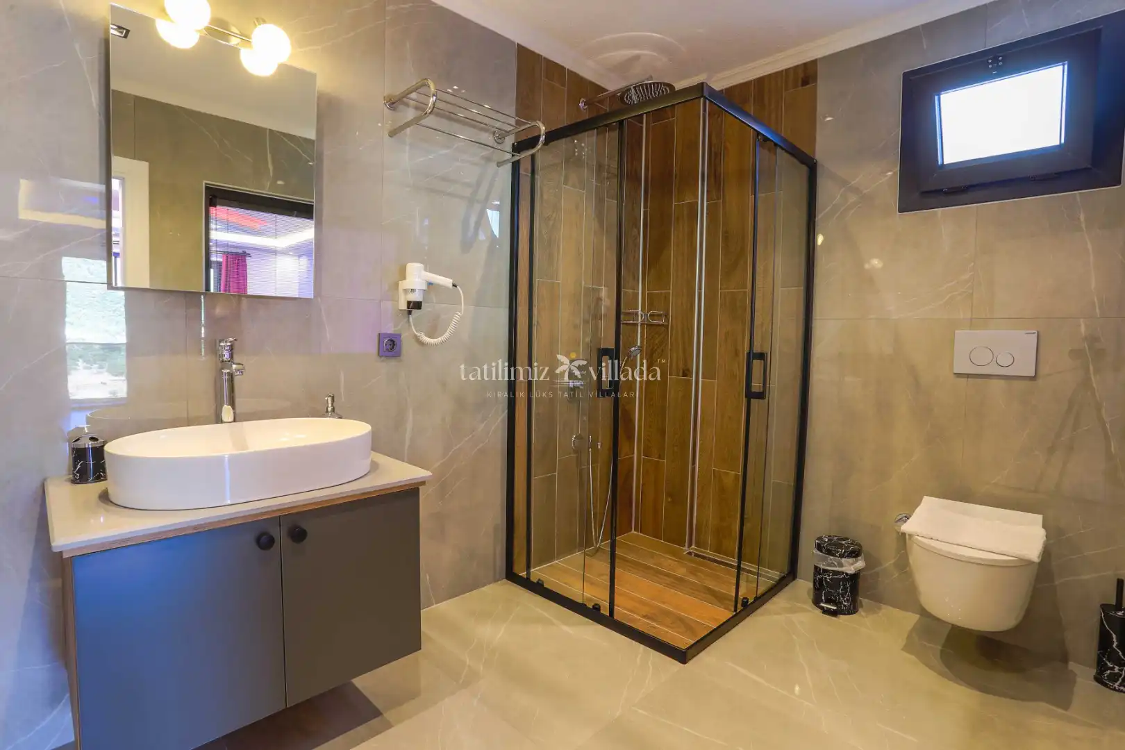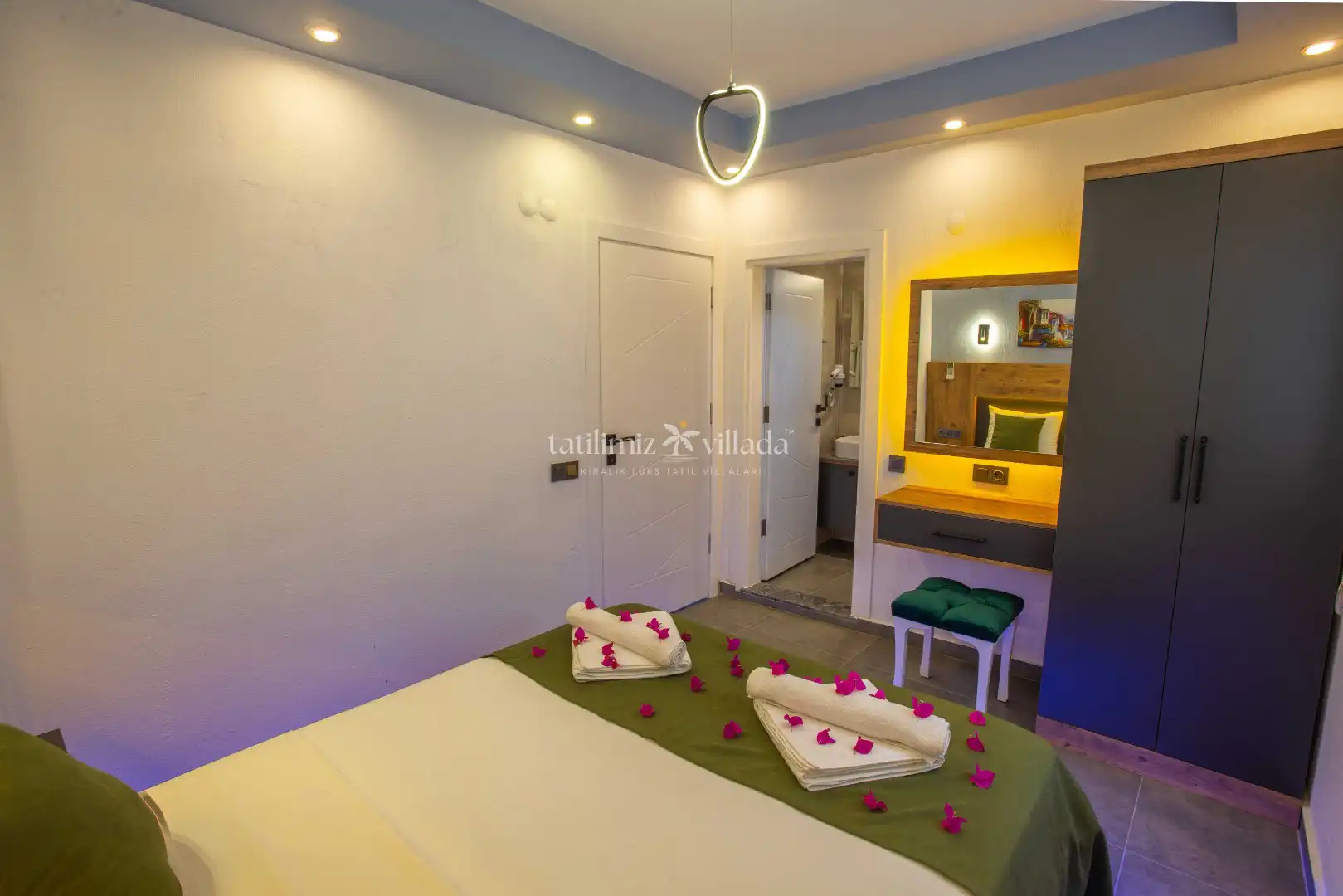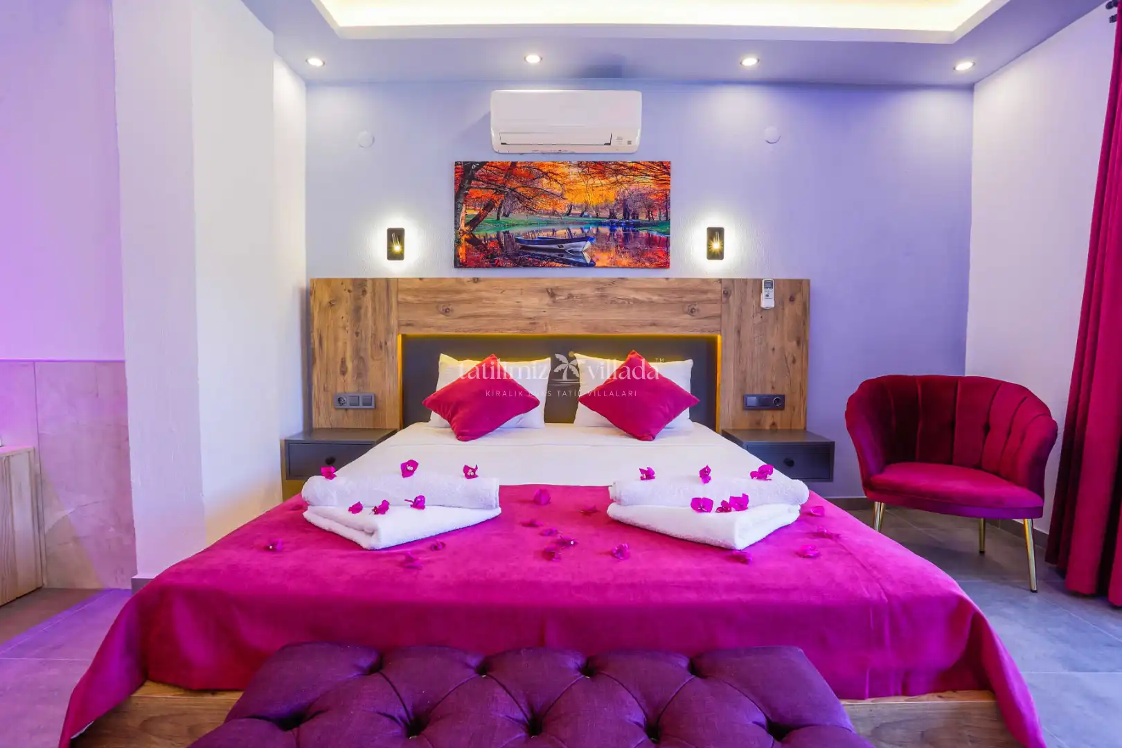 Jakuzili tasarımı ve mahremiyete önem veren yapısı ile bu jakuzili kiralık villa, hem dinlenmek hem de sevdiklerinizle keyifli anlar geçirmek isteyen misafirlerimiz için ideal bir seçenektir.