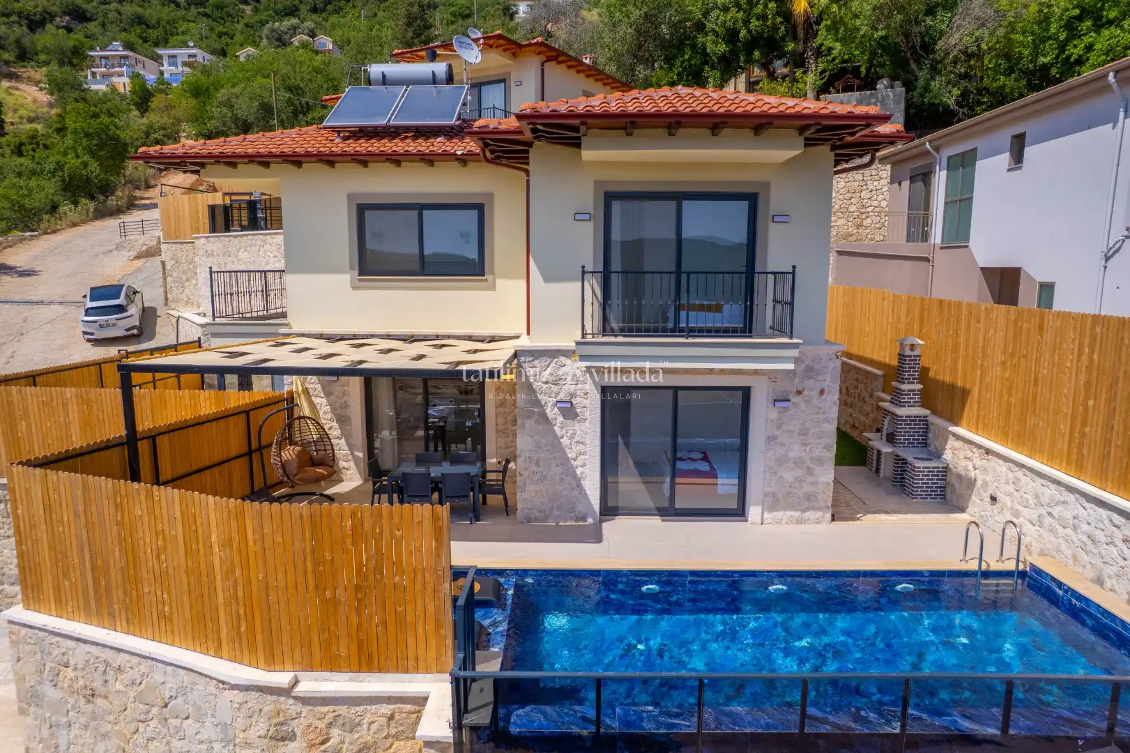 Muhafazakâr yapıya uygun olarak tasarlanan villamız, dışarıdan görünmeyen alanları sayesinde gözlerden uzak ve rahat bir tatil imkânı sağlamaktadır. Geniş ve yemyeşil bahçesi ile hem yetişkinler hem de çocuklar için keyifli bir kullanım alanı sunmaktadır.