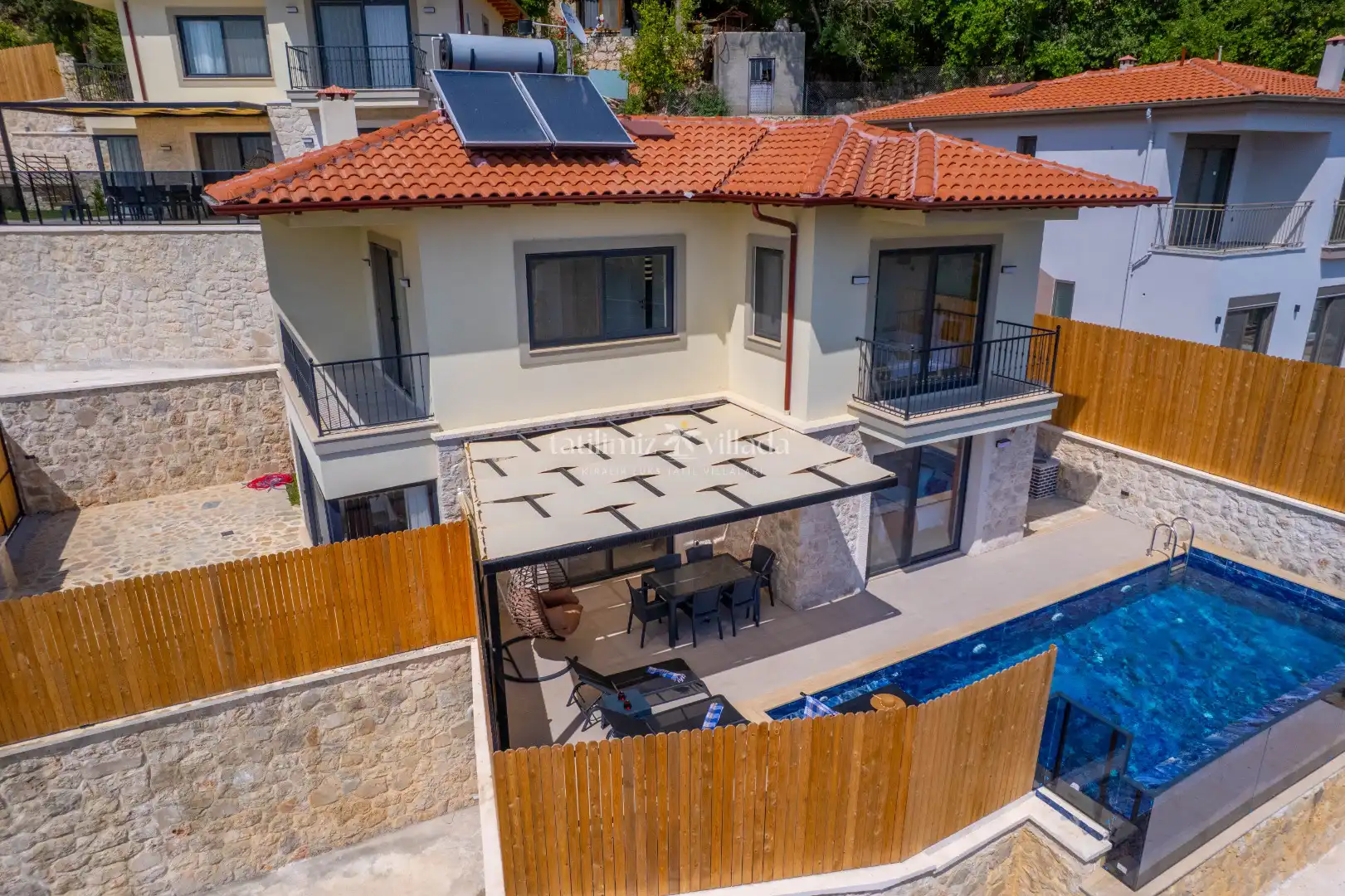 Kaş bölgesinde yer alan villamız, Kaş kiralık villa seçenekleri arasında doğa ile iç içe konumu ve merkeze yakınlığı ile dikkat çekmektedir. Çevresinde yer alan butik işletmelerde köy kahvaltısı yapabilir ve organik ürünlere kolayca ulaşabilirsiniz.