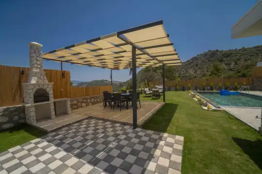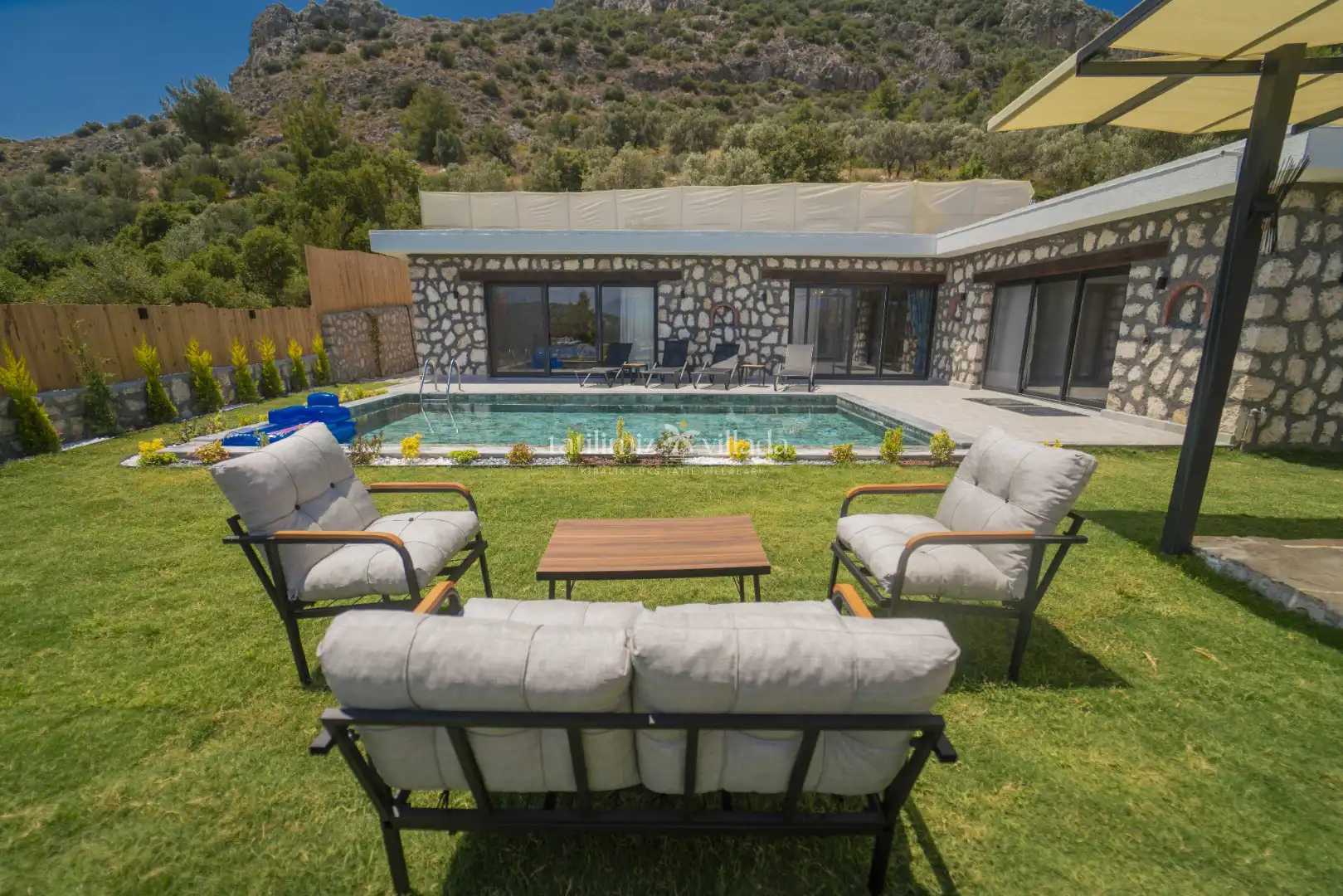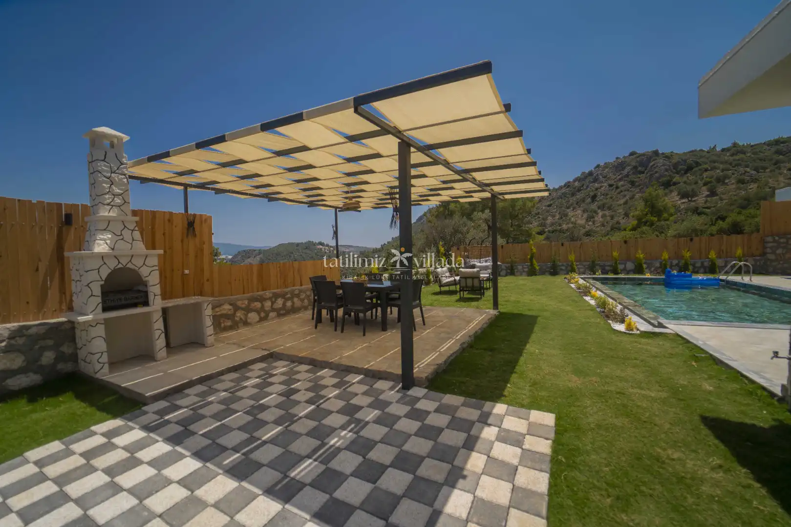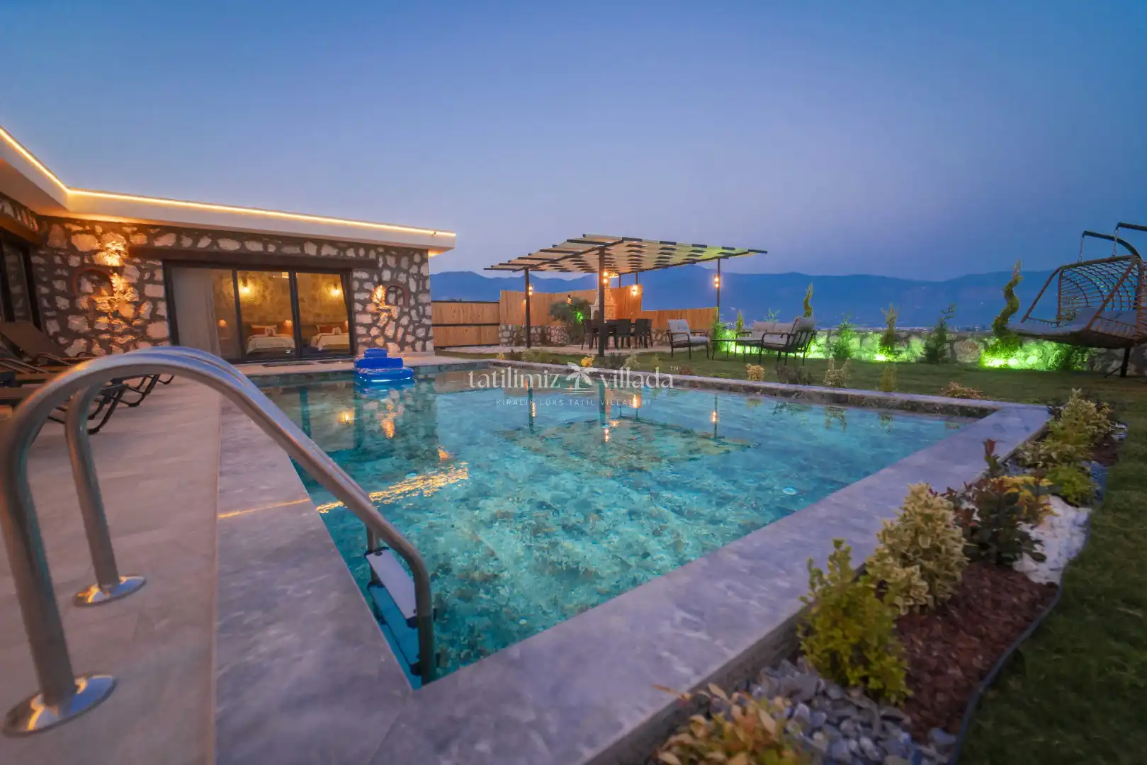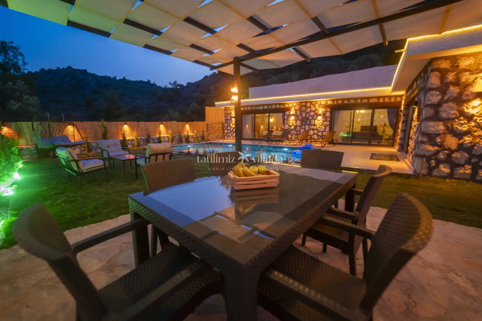 Fethiye kiralık villa alternatifleri arasında öne çıkan Villa Sunshine 1, tamamen size ait özel yüzme havuzu ve korunaklı bahçesi sayesinde dışarıdan görünmeyecek şekilde dizayn edilmiştir. Bu özelliği ile özellikle muhafazakâr aileler tarafından sıklıkla tercih edilen villamız, huzurlu ve güvenli bir tatil imkânı sağlamaktadır. Geniş bahçe alanında şezlonglar, güneşlenme alanı ve keyifli vakit geçirebileceğiniz oturma grupları bulunmaktadır.