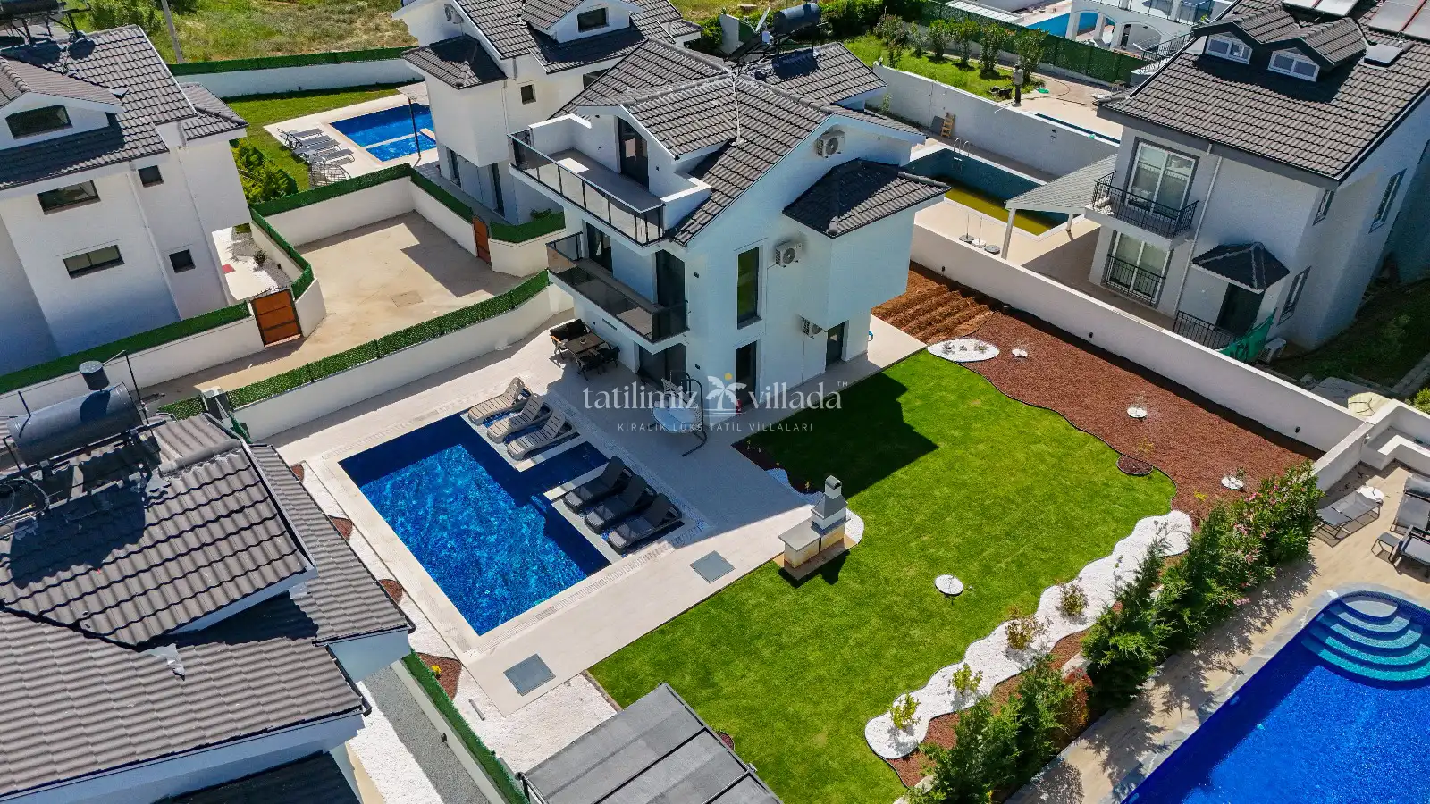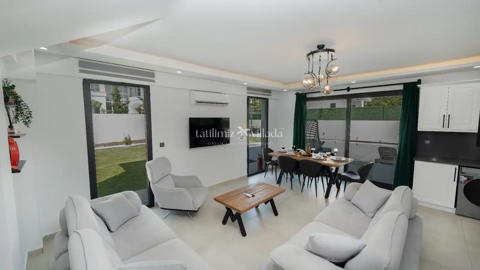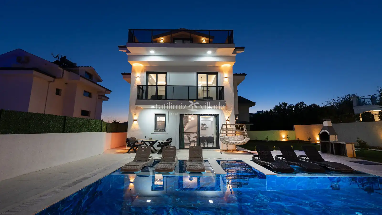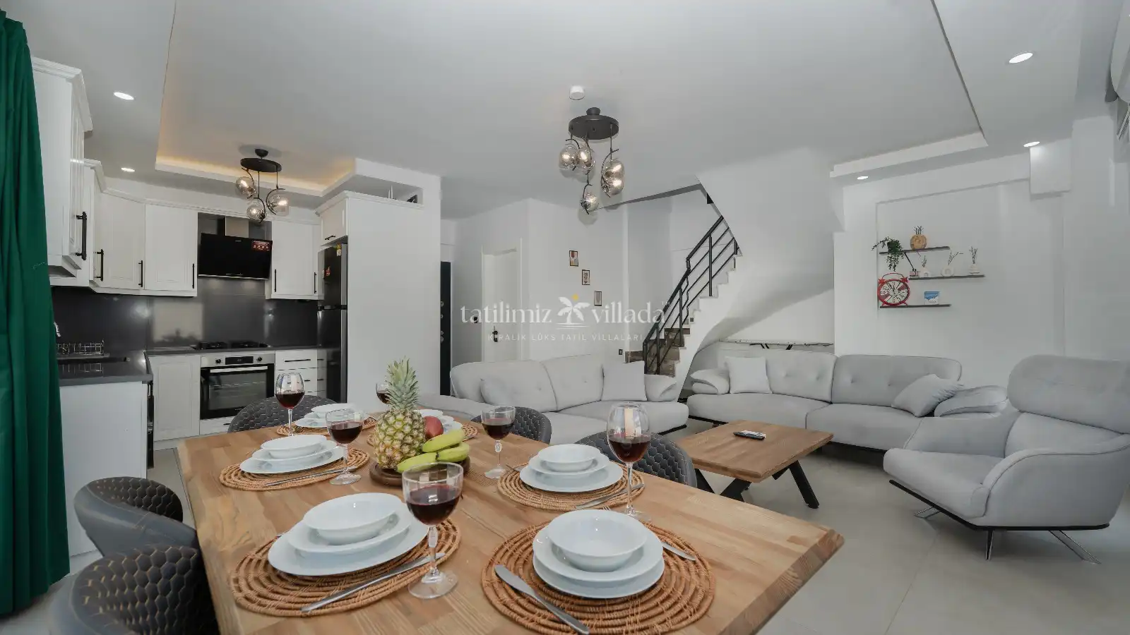 Villada 3 yatak odası ve geniş bir salon bulunmakta olup, konforlu mobilyalar ve aydınlık iç mekanlar tatilinizi keyifli hale getirir. Özel jakuzi, günün yorgunluğunu atmanız ve tatiliniz boyunca rahatlamanız için mükemmel bir ortam sağlar. Tam donanımlı mutfakta dilediğiniz yemekleri hazırlayabilir, havuz veya teras alanında sevdiklerinizle keyifli vakit geçirebilirsiniz.