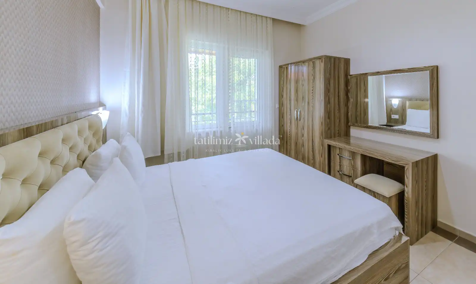 Not:Tesiste toplam 15 adet villa bulunmakta olup tüm villalar aynı konseptte tasarlanmıştır. Sadece koltuk ve benzeri mobilyaların renklerinde farklılıklar görülebilmektedir.