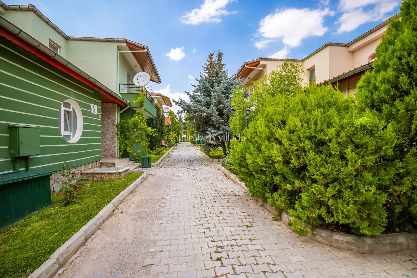 Villa, site içi konseptte yer almakta olup otel kalabalığı ve ortak alan yoğunluğu olmadan sakin bir tatil imkânı sunar. Tam donanımlı mutfak ve geniş salon alanı, ev konforunda yemek hazırlamanızı ve sevdiklerinizle keyifli vakit geçirmenizi sağlar.