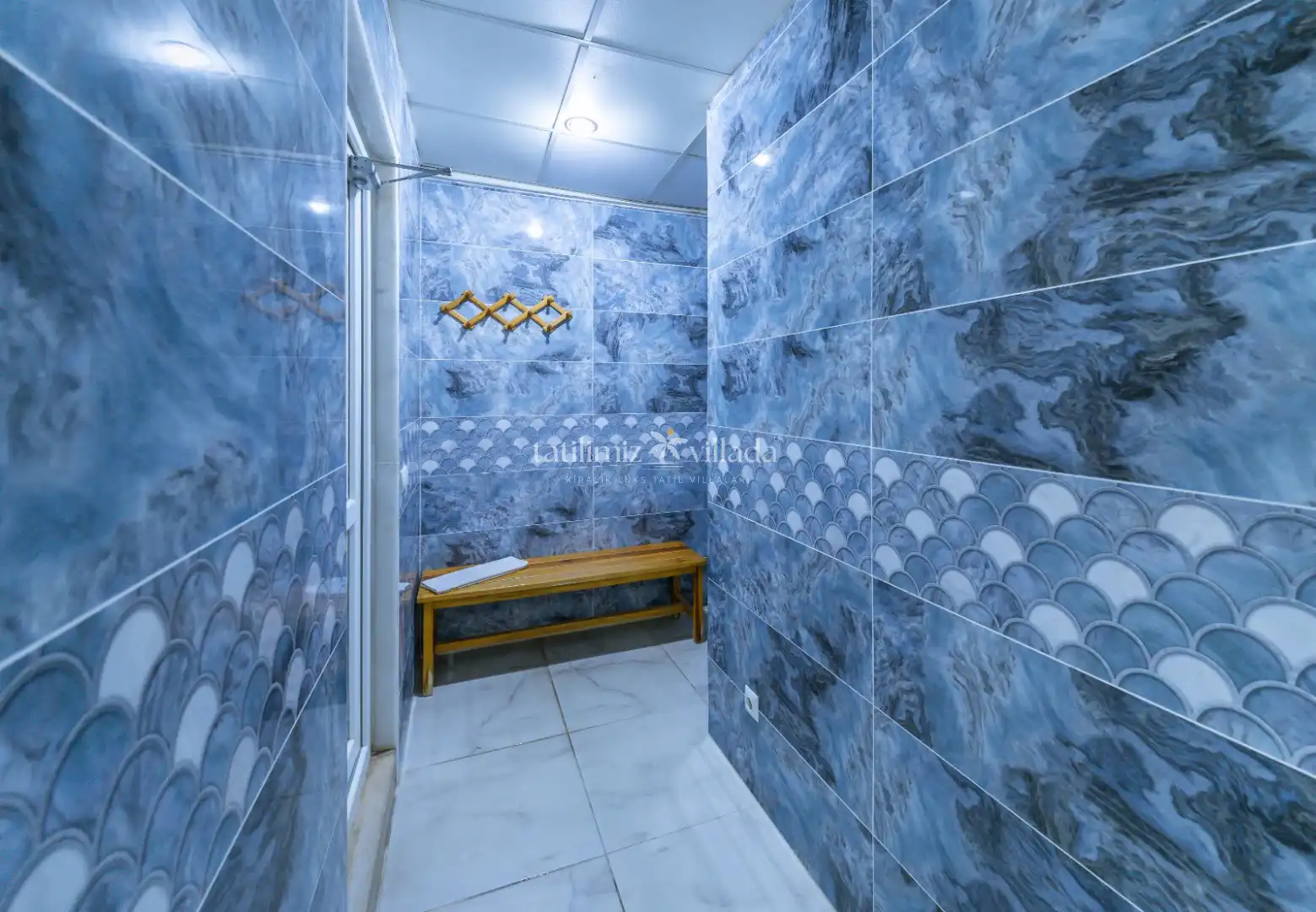 Villa Termal 3 Jakuzili dubleks villamız, 135 m² genişliğe sahip 2+1 dubleks yapısıyla ferah ve kullanışlı bir konaklama alanı sunmaktadır. Üst katta konumlanan iki adet yatak odası, rahat bir uyku deneyimi sağlarken jakuzili banyo sayesinde misafirlerine günün yorgunluğunu atabilecekleri keyifli bir alan sunar. Alt katta yer alan 16 m² büyüklüğündeki özel Türk hamamı, villanın öne çıkan özelliklerinden biridir. Hamam içerisinde bulunan 185×165 cm ölçülerinde ve 120 cm derinliğindeki termal havuz, tamamen size özel olup yılın dört mevsimi boyunca konforlu bir şekilde kullanılabilmektedir.