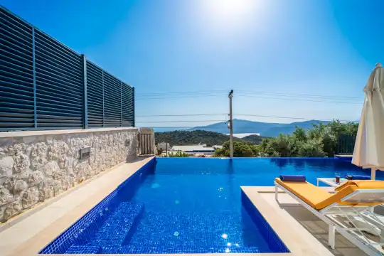 Tam donanımlı mutfağı, modern banyoları, özel yüzme havuzu ve güneşlenme alanlarıyla Villa Therapy, konforlu ve özgür bir tatil geçirmeniz için ihtiyaç duyacağınız tüm imkanlara sahiptir. Kalkan merkeze ve plajlara kısa bir sürüş mesafesinde yer alan villa, doğayla iç içe sakin bir konumda bulunurken aynı zamanda tüm olanaklara kolay erişim avantajı sunar.