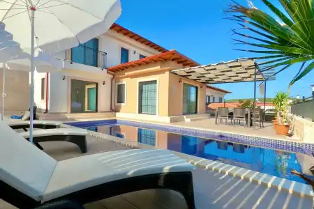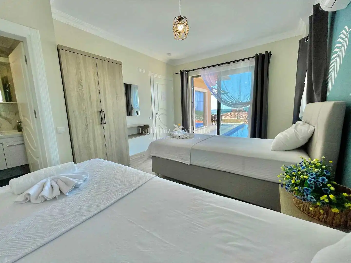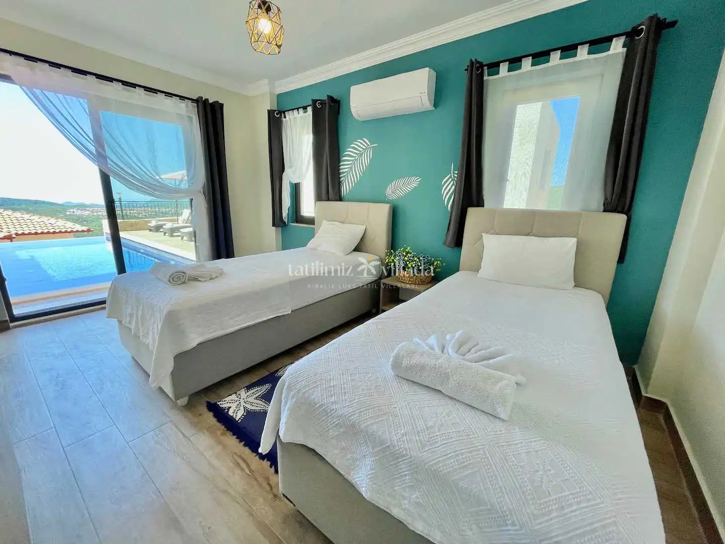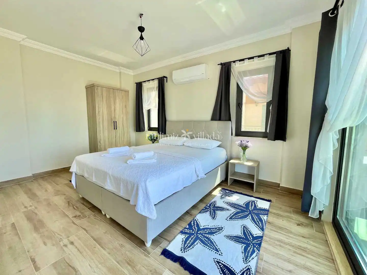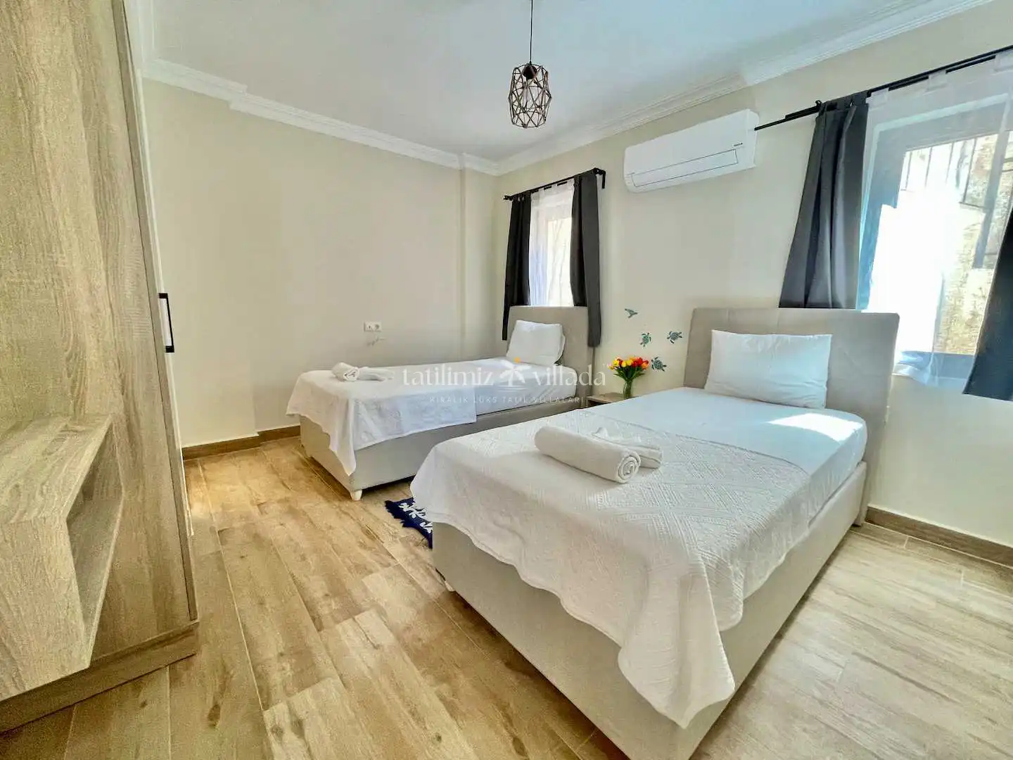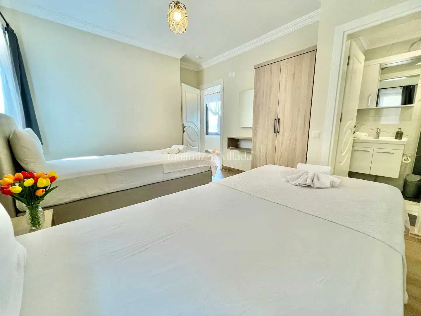 4 yatak odasına sahip olan villamız, toplamda 8 kişilik konaklama kapasitesi ile geniş aileler ve arkadaş grupları için oldukça uygundur. Tüm odalar özenle tasarlanmış olup modern ve konforlu detaylarla donatılmıştır. Ferah yaşam alanları sayesinde tatiliniz boyunca rahat ve keyifli bir konaklama imkânı sunmaktadır.