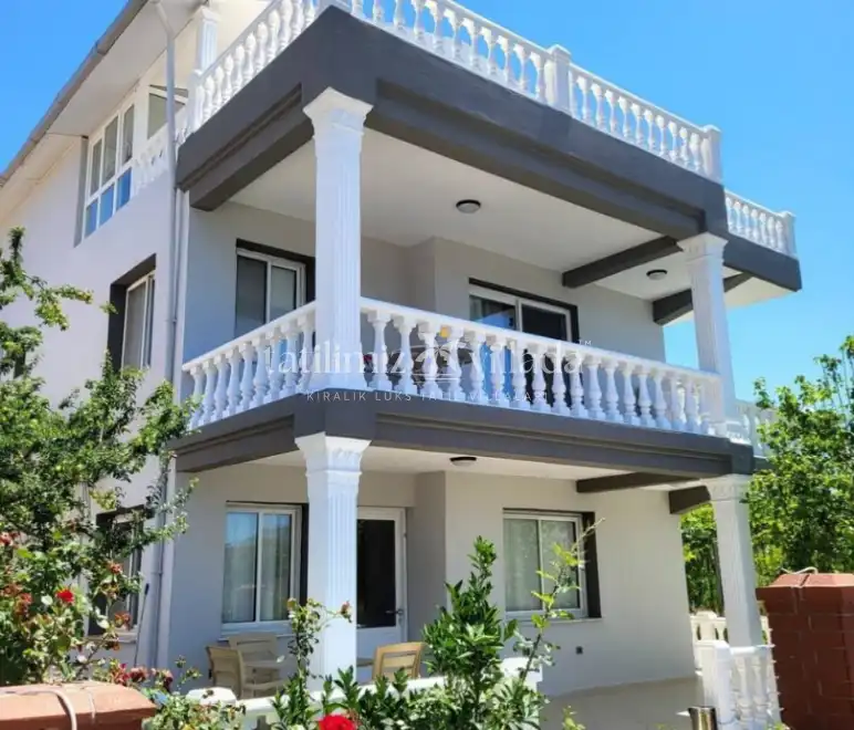 Geniş ve kullanışlı bir mimariye sahip olan Villa Toraman, kalabalık aileler ve arkadaş grupları için ideal bir konaklama seçeneğidir. Dört yatak odası ve ferah salonu sayesinde herkesin rahatça vakit geçirebileceği alanlar sunar. Villanın iç dizaynı sade ve modern detaylarla hazırlanmış olup, gün boyu doğal ışık alan yaşam alanları sayesinde aydınlık ve keyifli bir atmosfer oluşturur.