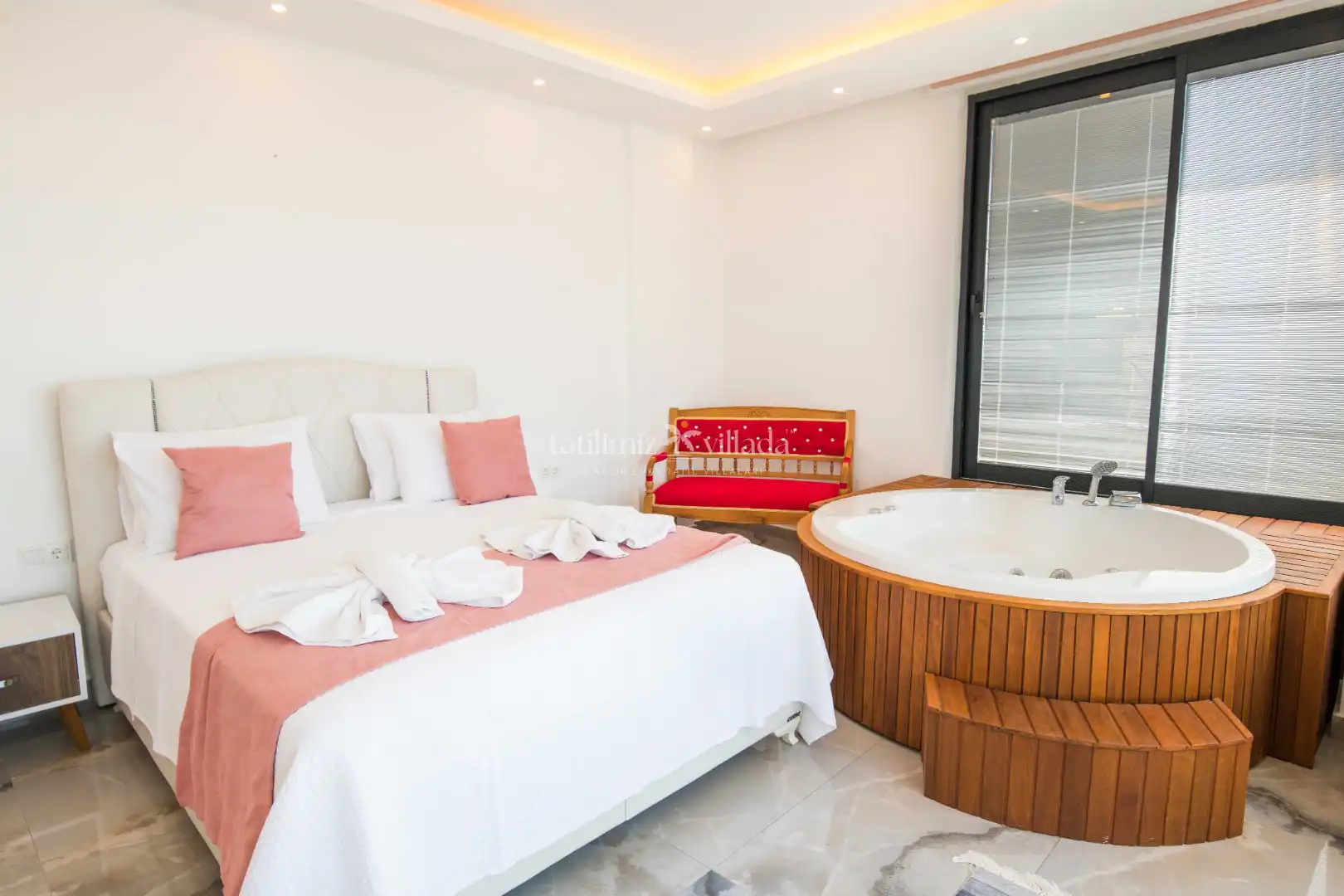 Villanın en dikkat çeken özelliklerinden biri özel jakuzisidir. Tatiliniz boyunca bu jakuzide dinlenip, eşsiz deniz manzarası eşliğinde günün yorgunluğunu atabilirsiniz.