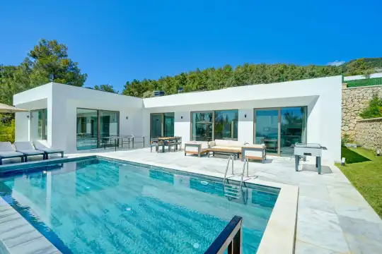 Villanın, havuz terasında kapasiteye uygun şezlong takımı, oturma grubu ve barbekü alanı bulunmakta olup yine havuz terasına açılan konforlu oturma odası ve tam donanımlı açık mutfağı; iki yatak odasında çift kişilik yatak, ebeveyn banyosu ve jakuzi; üçüncü yatak odasında da iki tek kişilik yatak ve ebeveyn banyosu bulunmaktadır. Bağlamın tadına varacağınız, ayrıcalıklı bir tatilin keyfini sürebileceksiniz.