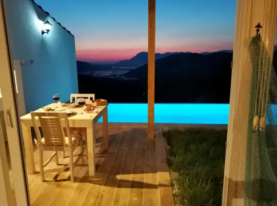 Villa Sunset, Fethiye'nin gözde tatil beldelerinden Kalkan Akbel mevkiinde yer alan 1+0 konseptine sahip, özel tasarlanmış bir tatil villasıdır. Balayı çiftleri ve bebeği olan aileler için mükemmel bir konaklama seçeneği sunan bu villa, 3 kişilik aileler için de ideal bir tercihtir. Ayrıca, bebek yatağı da talep üzerine villaya eklenmektedir, bu sayede bebekli aileler de rahat bir tatil geçirebilirler.