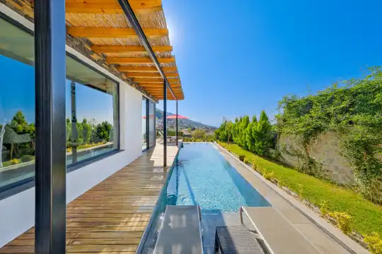Fethiye Faralya’da, deniz manzaralı, jakuzili, müstakil havuzlu ve lüks bir tatil arayan misafirler için ideal bir villa seçeneği. Hem balayı çiftleri hem de çekirdek aileler için uygundur.