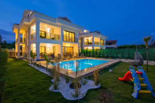 Fethiye'nin gözde Babataşı mevkiinde, şehir merkezine sadece birkaç dakika mesafede yer alan Villa White Palm 2, konforlu ve lüks bir tatil deneyimi arayanlar için mükemmel bir seçenektir. Özel yüzme havuzu ile rahatlatıcı bir tatil sunan bu modern villa, 5 yatak odasıyla toplamda 9 kişiye kadar konaklama imkanı sağlar. Villa, her biri farklı konfor olanaklarına sahip geniş ve şık odalardan oluşmaktadır. Alt katta bir adet tek kişilik yatak, klima ve ortak kullanım WC-Duş yer alırken, ikinci katta ise iki adet çift kişilik yatak, klima, ortak WC-Duş, sauna ve bir odada ebeveyn banyosu bulunmaktadır. Üçüncü katta ise bir çift kişilik yatak ve iki tek kişilik yatak, klima ve ortak kullanım WC-Duş mevcuttur. Villa White Palm 1’in açık mutfak, salon, klima ve TV gibi modern olanaklara sahip ortak alanı, misafirlerinin rahatça vakit geçirebileceği geniş bir yaşam alanı sunmaktadır. Hem aileler hem de arkadaş grupları için ideal olan bu villa, Fethiye’nin eşsiz doğasında huzurlu bir tatil geçirmek isteyen herkes için tasarlanmıştır. Ayrıca, Villa White Palm 1 yan tarafta yer almakta olup, büyük gruplar veya aileler için iki villanın birleşimi mükemmel bir seçenek oluşturur. Villa White Palm 2, şehre yakın konumu ve sunduğu zengin olanaklarla unutulmaz bir tatil deneyimi yaşamanızı sağlar.