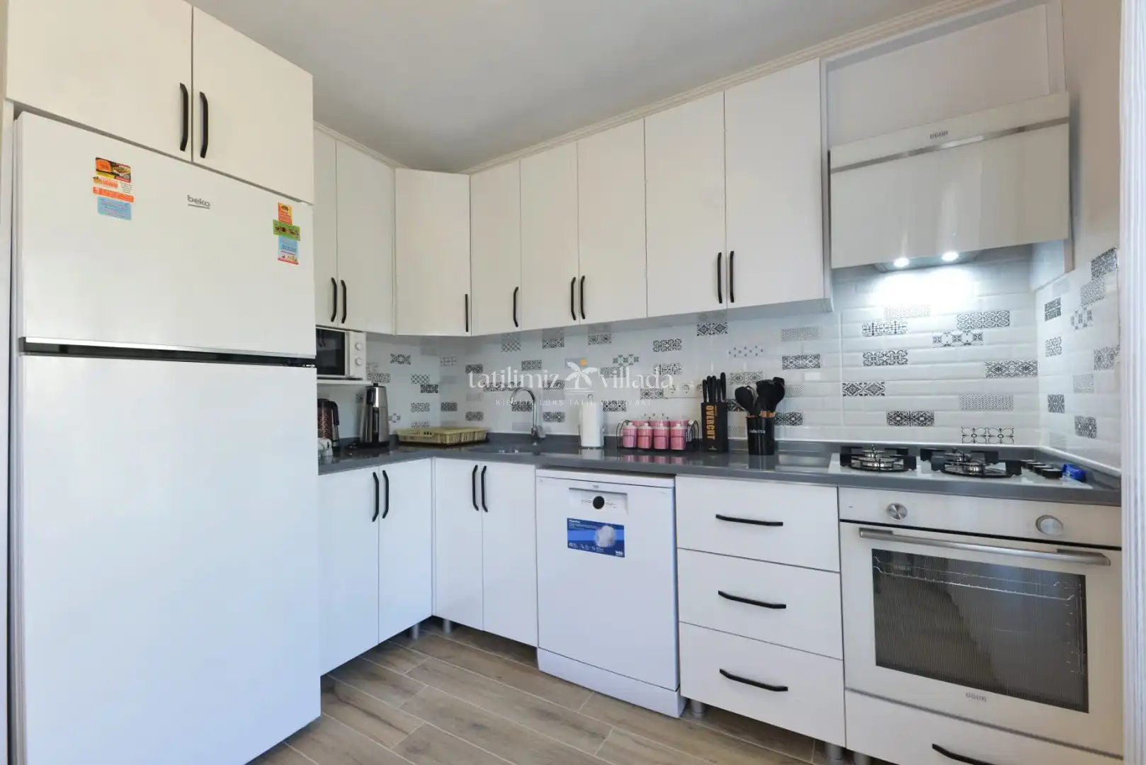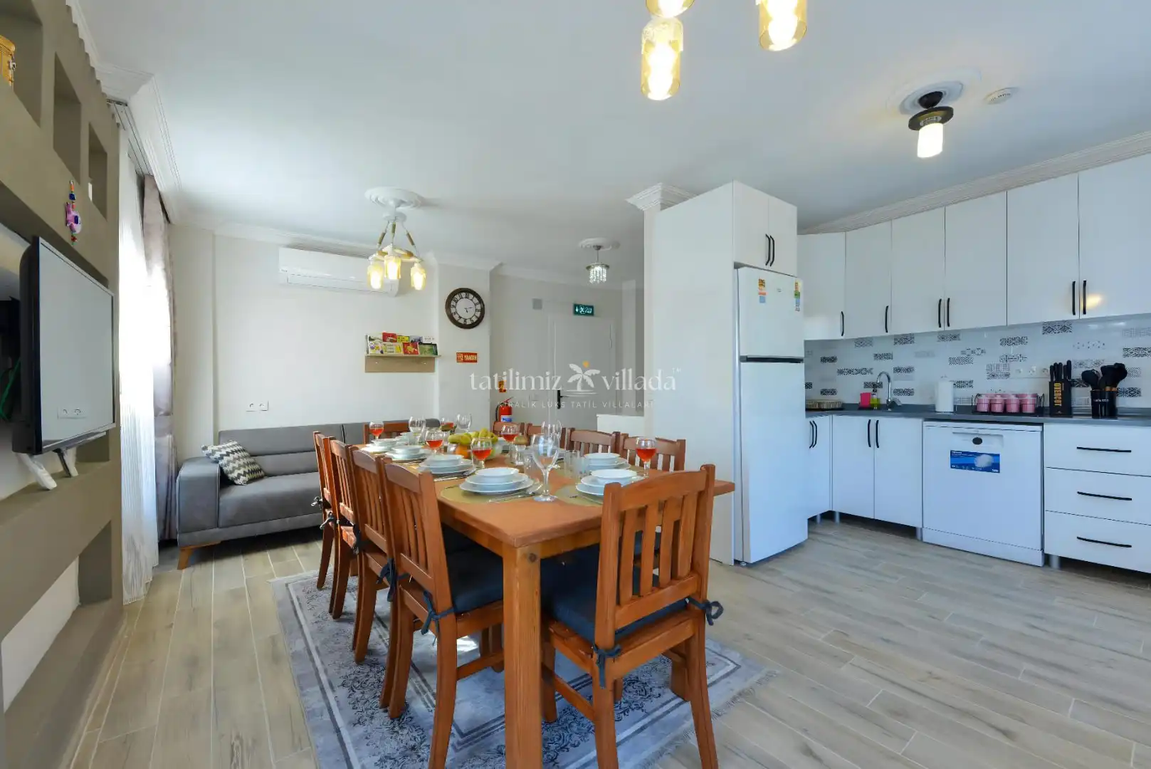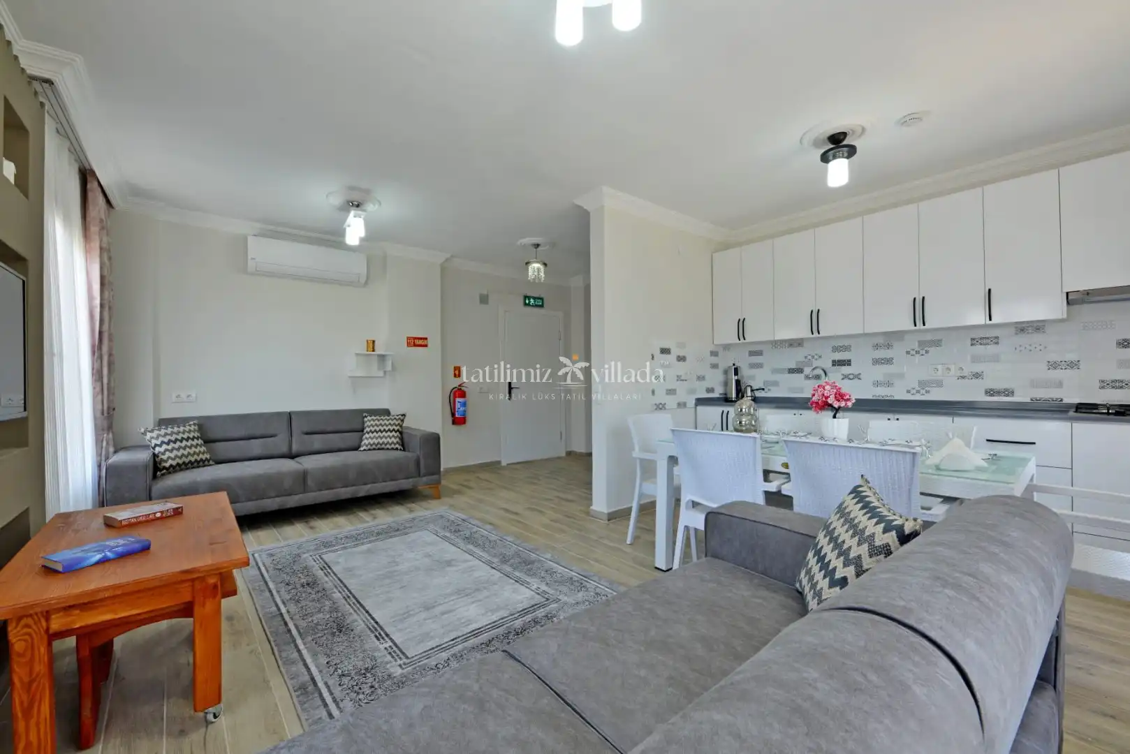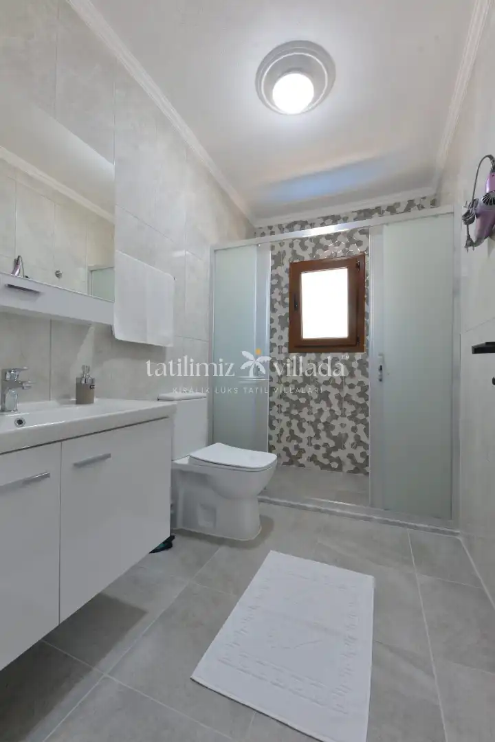 Modern ve kullanışlı mimarisi ile dikkat çeken villamızın iki katında da açık mutfak ve salon alanı bulunmaktadır. Geniş yaşam alanları sayesinde misafirlerine konforlu ve ferah bir konaklama imkânı sunmaktadır.