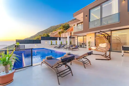Korunaklı havuz alanı, özel hayatın korunması isteyen misafirler için ideal bir ortam sunuyor. Verandasında bulunan langırt, salıncak, barbekü ve oturma alanlarıyla manzaranın tadını çıkarabilir, keyifli anlar yaşayabilirsiniz. Ayrıca, villanın içindeki bilardo masası ile eğlenceli vakitler geçirmek de mümkün.