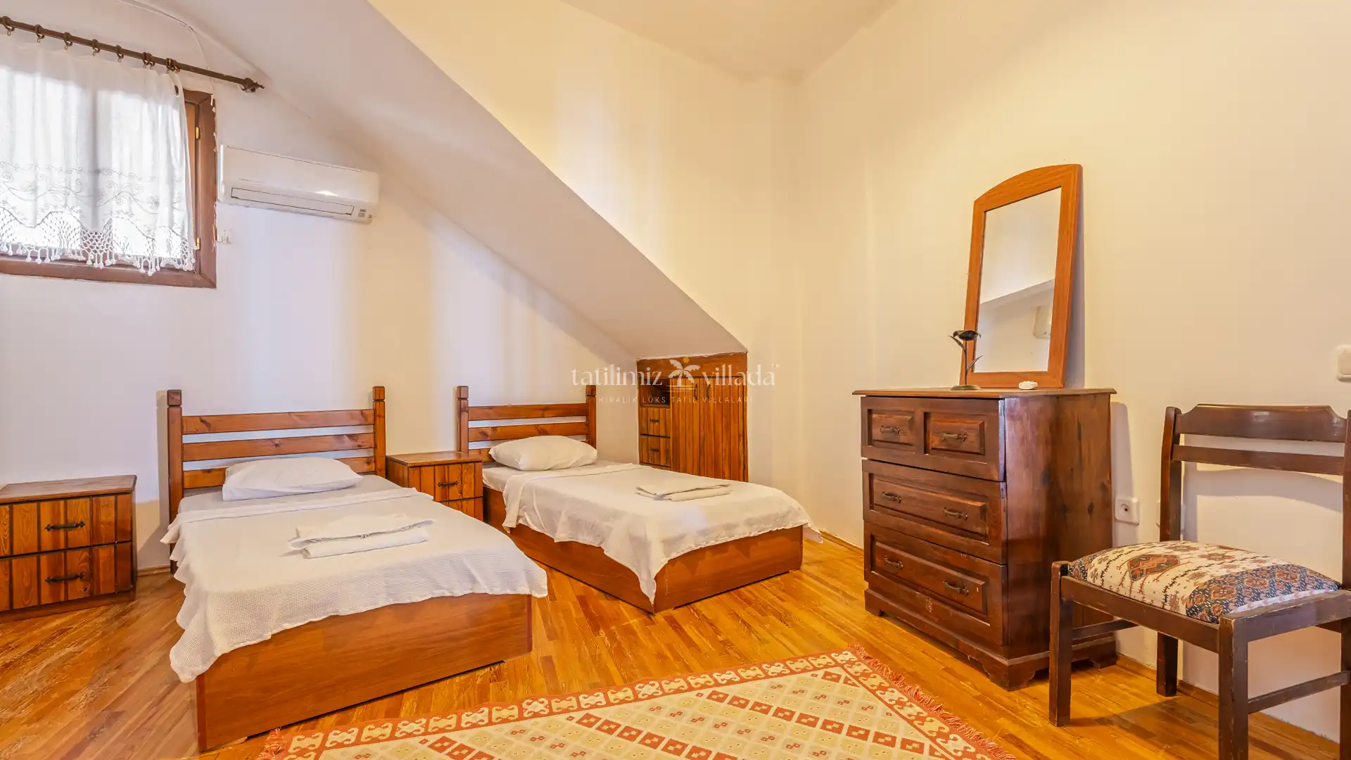 Villanın korunaklı havuz alanı ve bahçesi, muhafazakar tatil anlayışına sahip aileler ve gruplar için rahat ve özgür bir kullanım imkânı sağlar. Modern ve şık şekilde dekore edilmiş iç mekânlar, konforlu mobilyalar ve geniş yaşam alanları ile misafirlerine ev sıcaklığında bir konaklama deneyimi sunar. Tam donanımlı mutfağı, geniş salonu ve konforlu yatak odaları sayesinde uzun süreli konaklamalar için de oldukça uygundur.